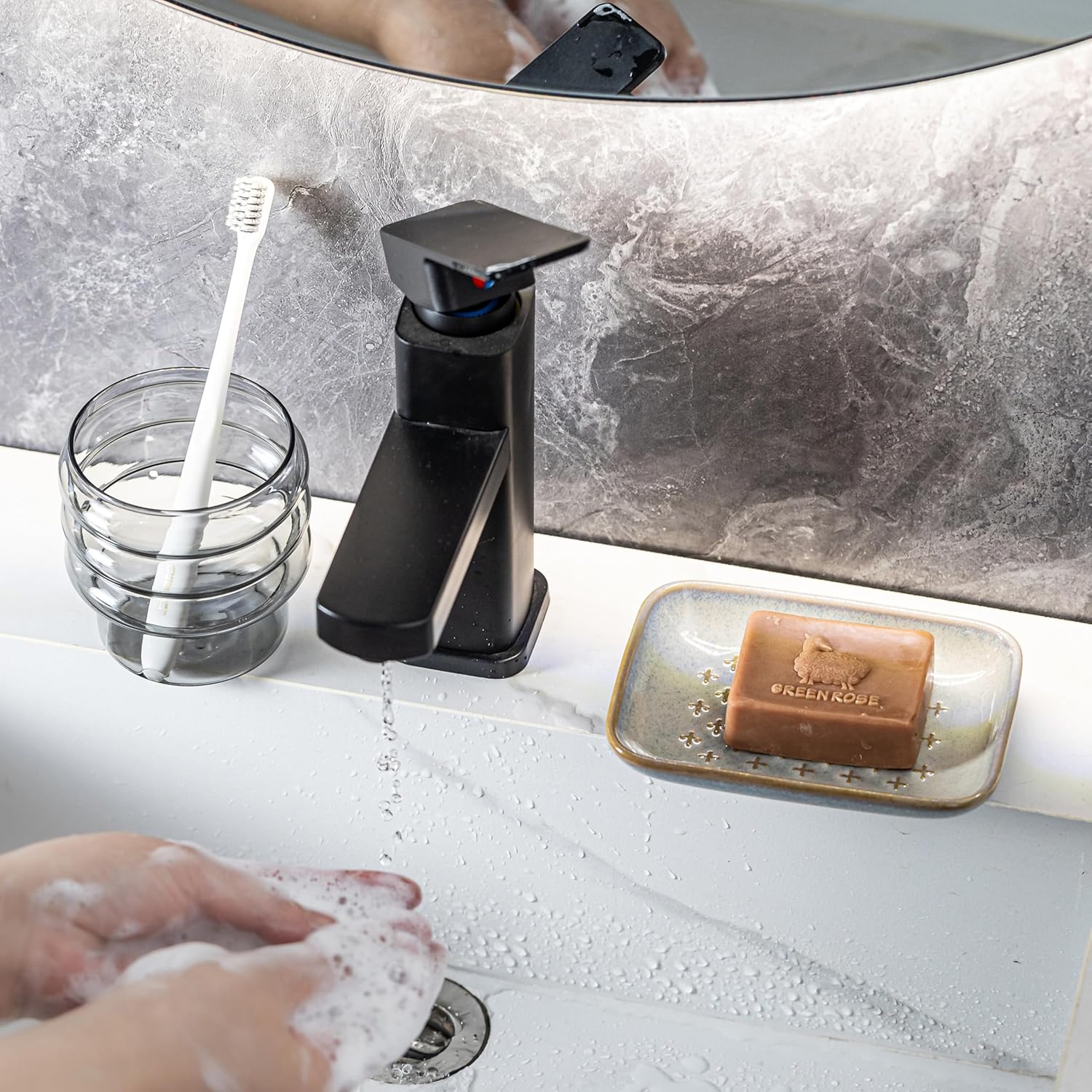 • PREMIUM CERAMIC & EFFORTLESS CLEANING: Crafted from premium and enduring ceramic, this soap dish features waterproof, slip-resistant, and heat-resistant properties. The unglazed bottom ensures stable placement to avoid sliding. Its smooth surface enables easy maintenance - gently wipe with a soft brush or clean in the dishwasher (weekly recommended).