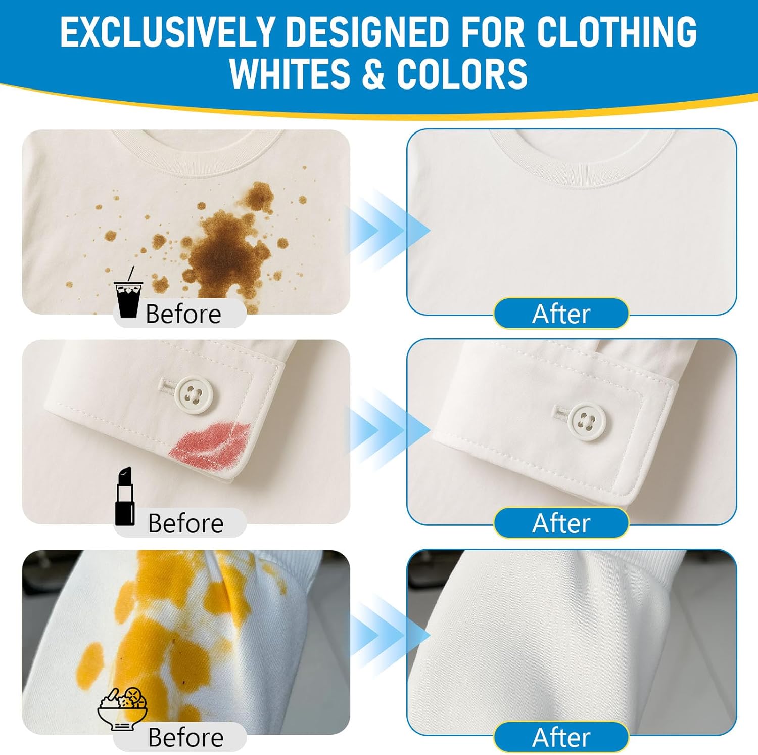 • Safe for Whites & Colors – Specially formulated bleach pen for clothing that works on both white and colored fabrics, removing stains without causing fading.