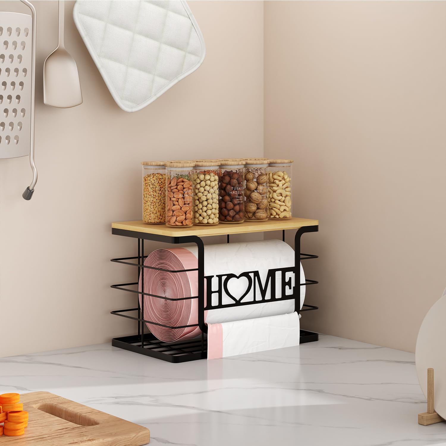 Trash Bag Holder, Thipoten Trash Bags Dispenser with Bamboo Top, Suitable for Garbage Bags Purchased Online or Supermarket, Perfect Storage Organizers for Cabinet, Under Sink (Black, Extra Large)