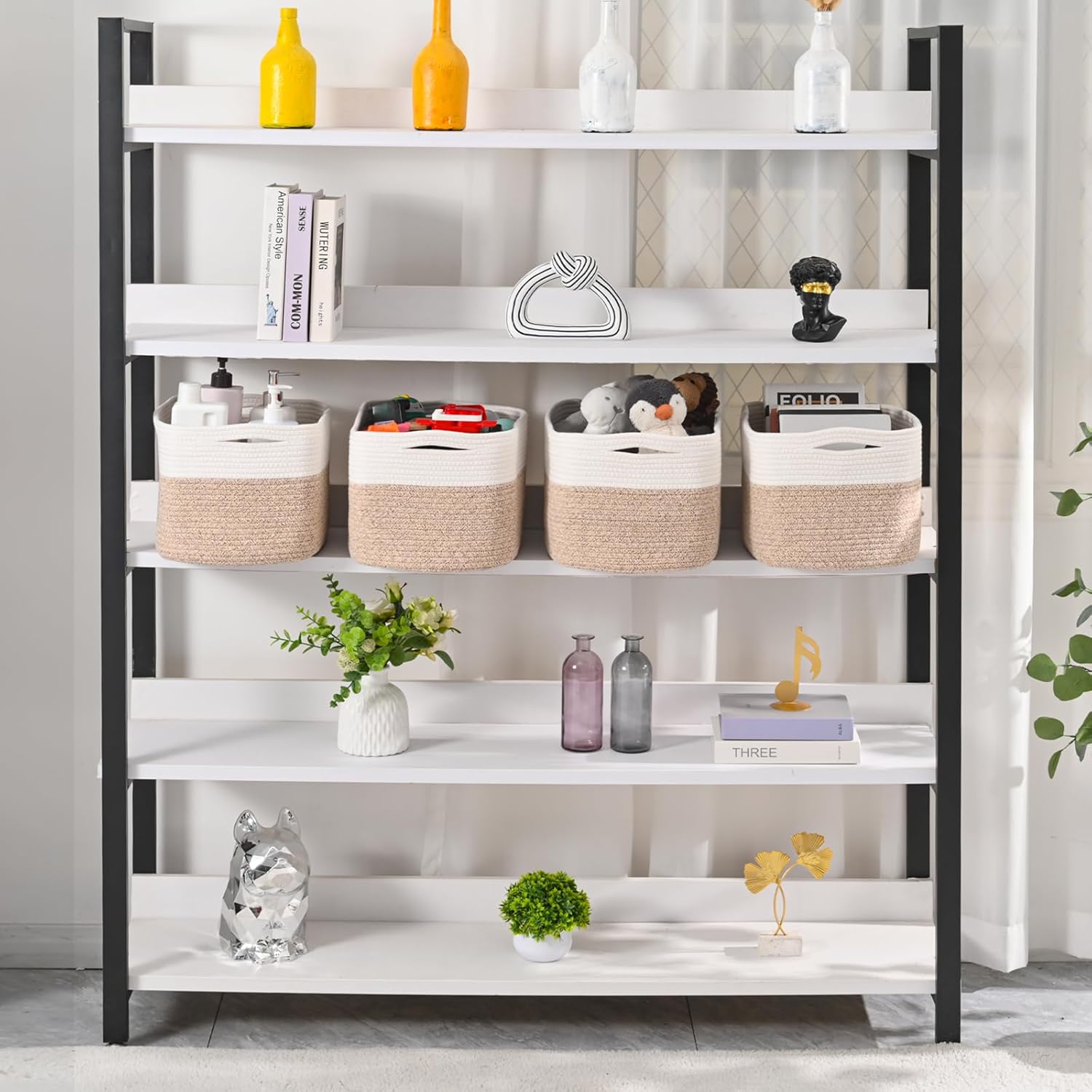 • DECORATIVE CUTE WEAVED BASKETS: ICERZCZ is dedicated to tidy and organizing beautifully for the home. A stylish and practical way to display eye-catching items on tables and counters. Not only will our shelf baskets set help you organize your items, its sleek, sophisticated shape and neutral colors will complement any decor