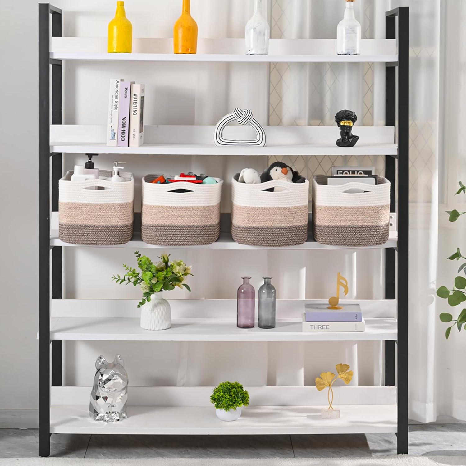 Storage Baskets for Organizing & Shelves, Woven Cotton Rope Organization Bins for Dog Toys, Clothes, Books, Nursery Organizer, 15"Lx11"Wx9.5"H, (4 Packs) Gradient Brown
