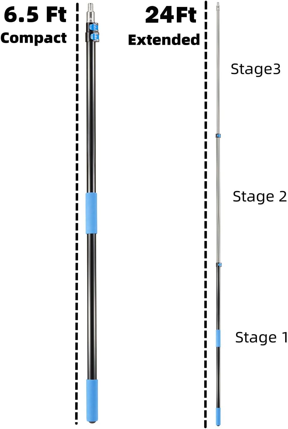 • Comes with a telescopic pole which is made of lightweight sturdy aluminum and features easy flip-tab lock mechanism for adjusting to any custon length from 6 to 24ft.