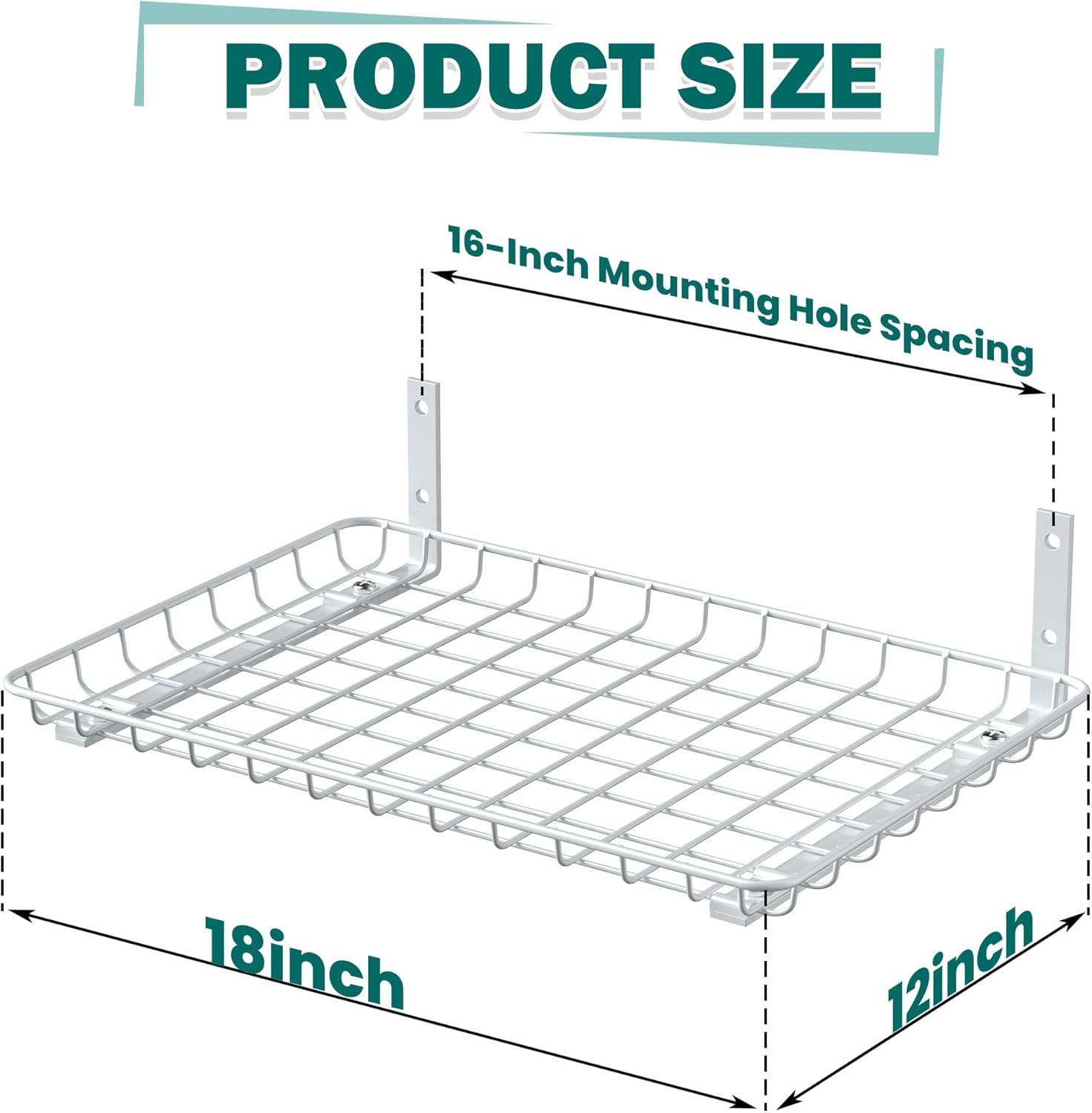 EVERHANGER Garage Wall Shelves 12x18 Inch, Wall Mounted Storage Shelf, Metal Shelf Rack, Heavy-Duty Shelf Organizer 2 Pack, White