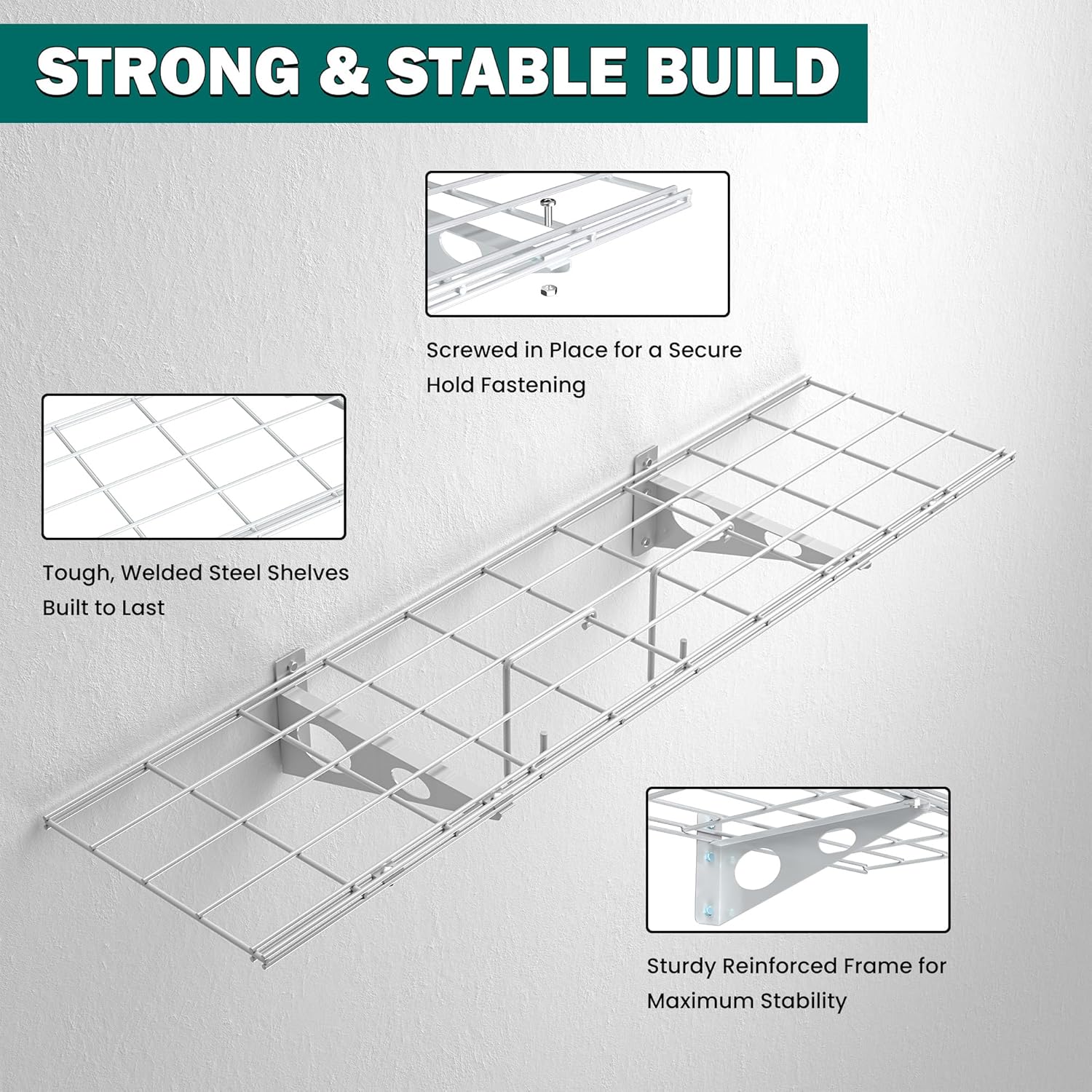 • RUST-PROOF COATED STEEL: Built to last, this wall-mounted shelf is made of high-quality powder-coated steel that resists rust, corrosion. Perfect for garage, basement, and laundry room—even in damp or harsh environment