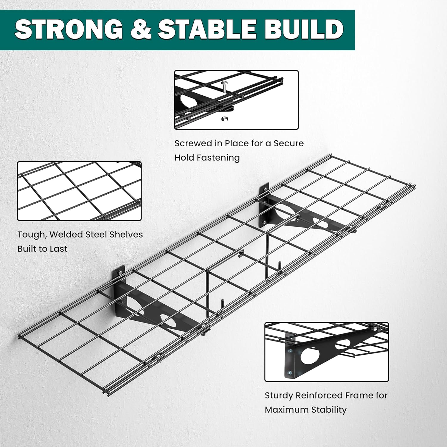 • RUST-PROOF COATED STEEL: Built to last, this wall-mounted shelf is made of high-quality powder-coated steel that resists rust, corrosion. Perfect for garage, basement, and laundry room—even in damp or harsh environment