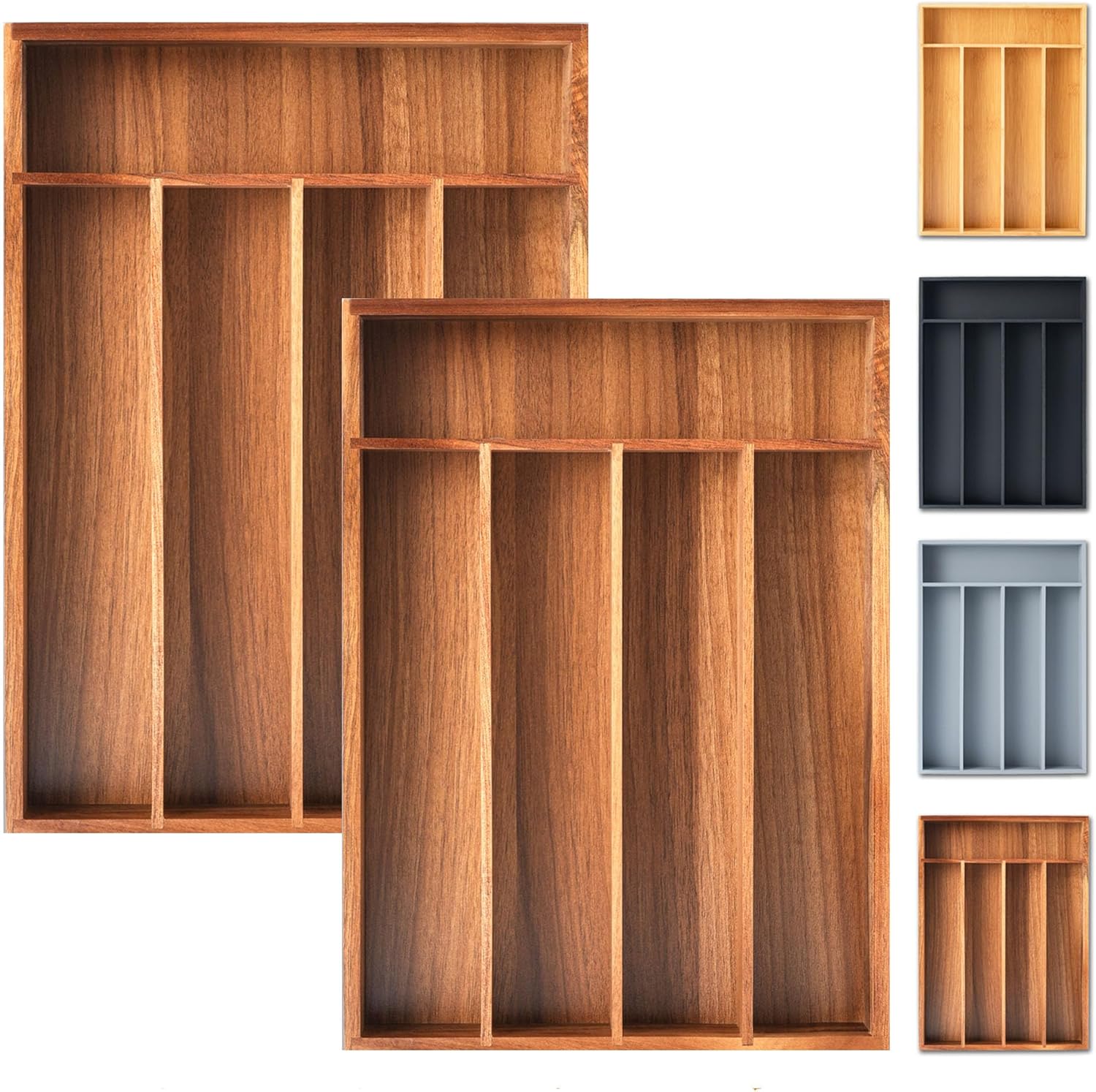 • Built to Last: Crafted from premium acacia aged 4+ years, this drawer organizer is tough enough for daily use. The eco-friendly material resists water, odors, and even knife scratches—no more unsightly marks! Unlike plastic or metal organizers, its classic, natural look shines with unique, evenly textured acacia grain that adds warmth to your kitchen.