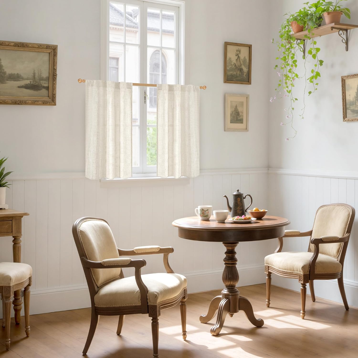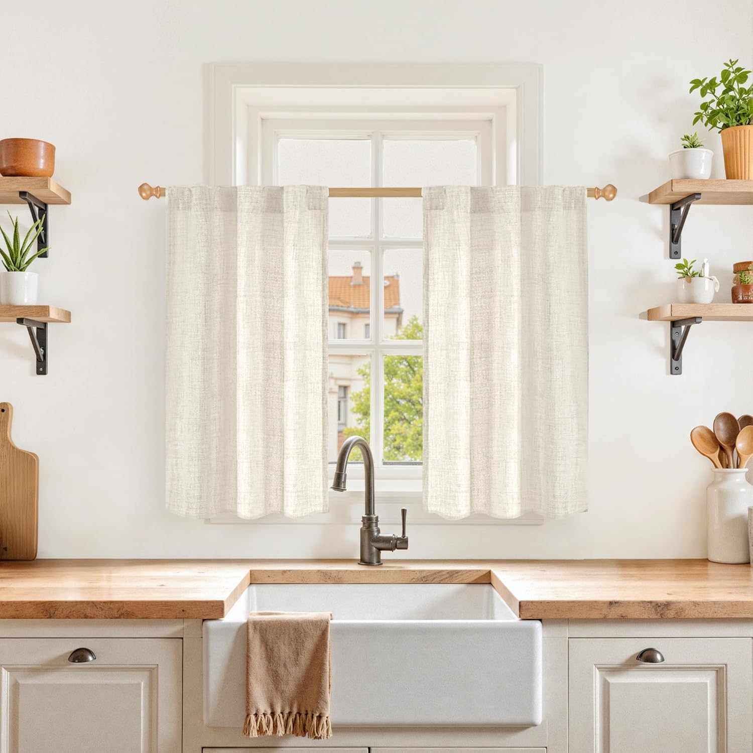 YoungsTex Boho Linen Curtains 36 Inch Length for Kitchen Cafe Window, Semi Sheer Half Window Drapes with Rod Pocket Back Tab Light Filtering Short Curtain for Bathroom, 2 Panels, 30 X 36 Inch