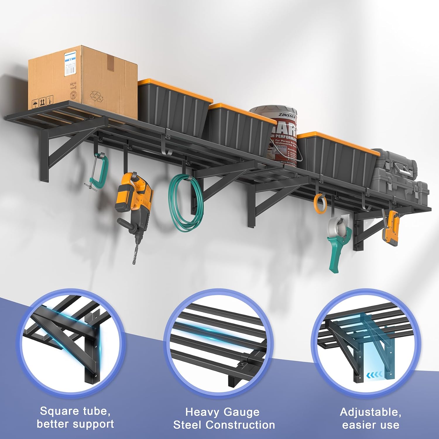 • PREMIUM STRENGTH & STABILITY: Engineered with heavy-duty steel, our wall shelf system features reinforced square tube supports, a seamless integrated frame, and secure U-hooks for superior durability. Every component undergoes rigorous quality testing to ensure maximum safety and long-lasting performance