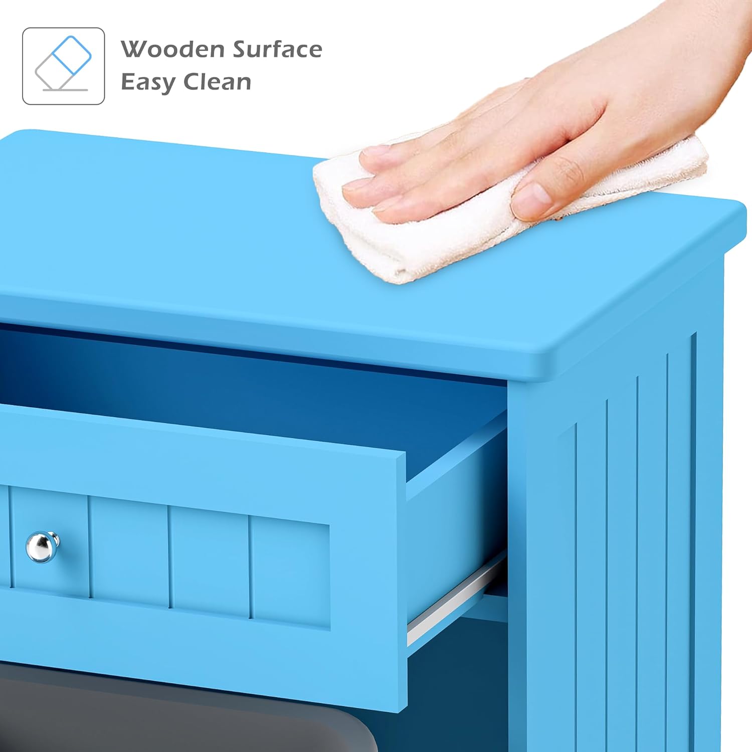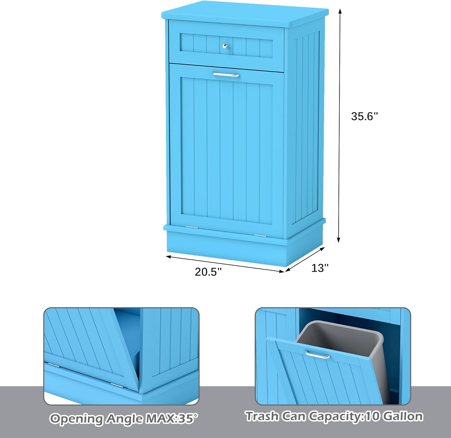 Betterhood Tilt Out Trash Cabinet 10 Gallon Wooden Free Standing Laundry Sorter Cabinet,Recycling Cabinet with Hideaway Drawer,Tilt Out Trash Cabinet Can Bin Kitchen (Single Light Blue, Single Dooor)