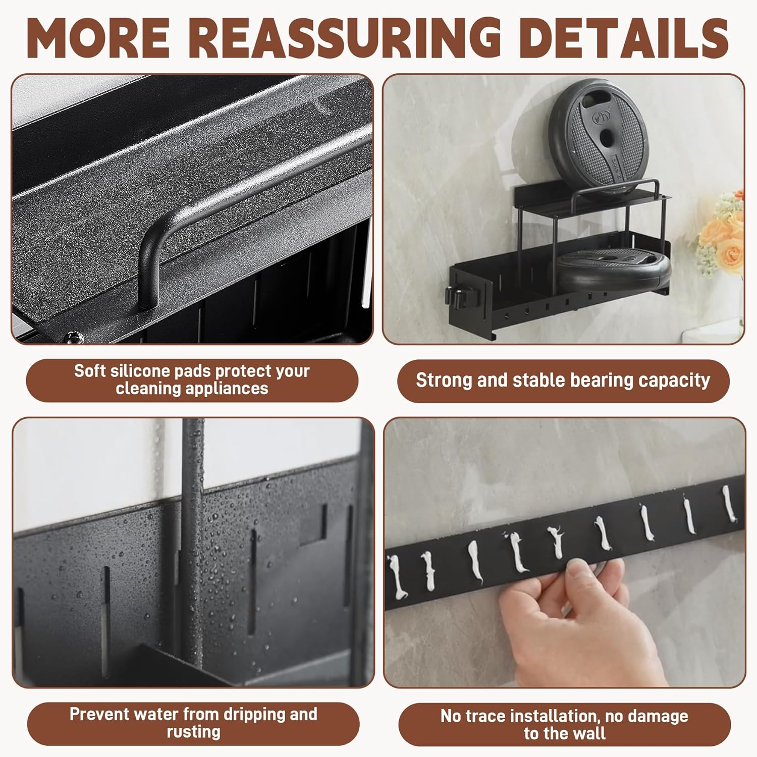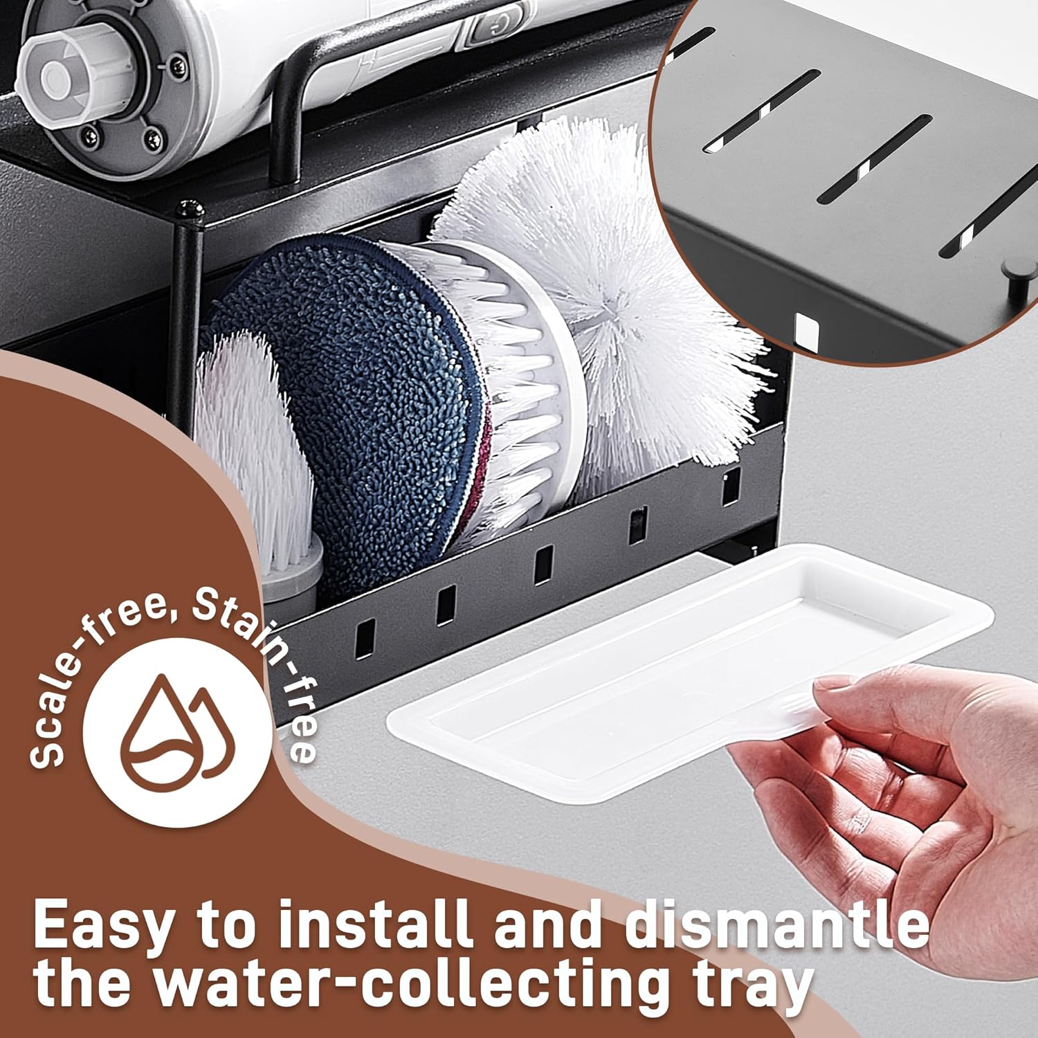 • VERSATILE DESIGN: Wall-mounted or countertop cleaning tool organizer with guardrail-type shelving and water-collecting tray for neat storage of brushes and cleaning supplies