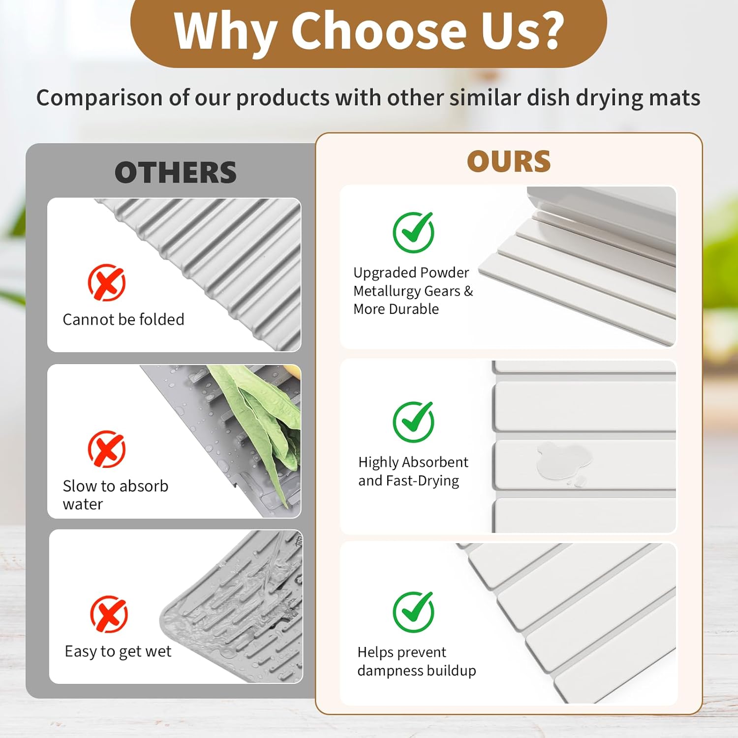 • Roll Up Self-Drying Dish Mat:This stone kitchen drying mat folds effortlessly for compact storage in drawers or cabinets. The fast-drying surface keeps countertops neat, ideal for small kitchens, RVs, or dorms. Its sleek stone-textured design saves space with a modern minimalist look.