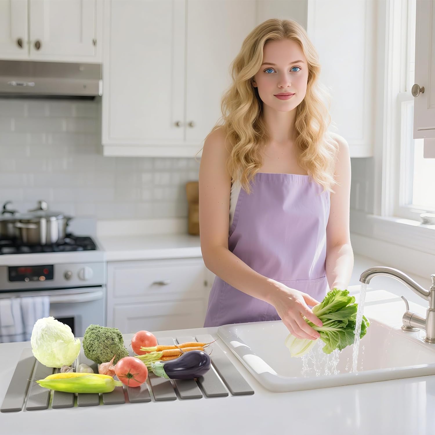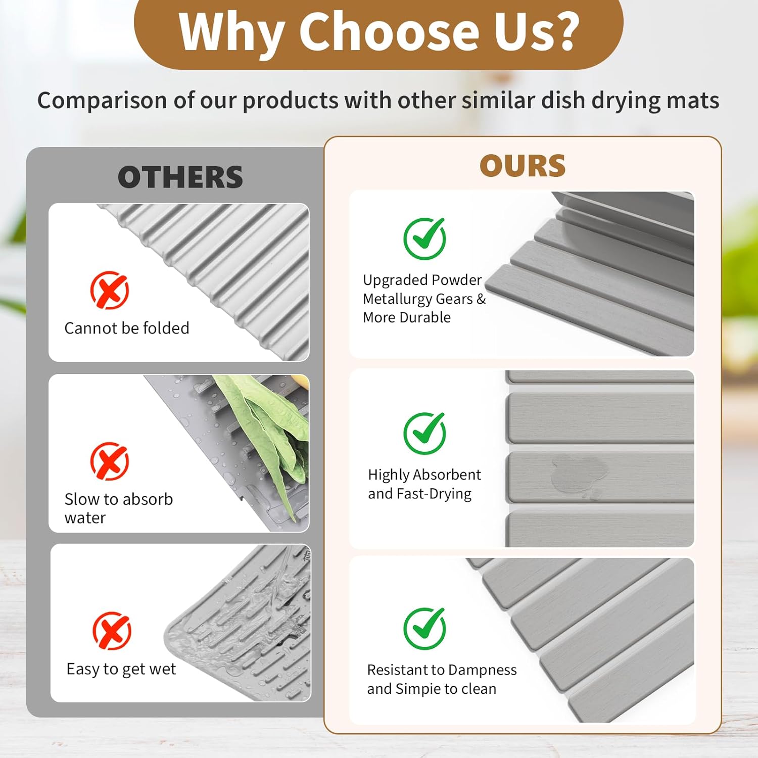 • Roll Up Self-Drying Dish Mat:This stone kitchen drying mat folds effortlessly for compact storage in drawers or cabinets. The fast-drying surface keeps countertops neat, ideal for small kitchens, RVs, or dorms. Its sleek stone-textured design saves space with a modern minimalist look.