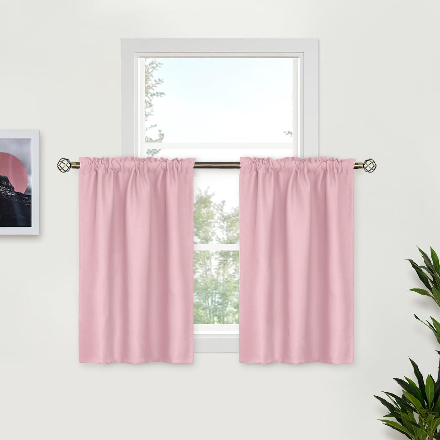 BGment Baby Pink Blackout Curtains 36 Inch Length for Short Window - Small Drapes Thermal Insulated with Rod Pocket Privacy for Cafe Kitchen Bathroom Girl Bedroom, 34 x 36 Inch, 2 Pnels