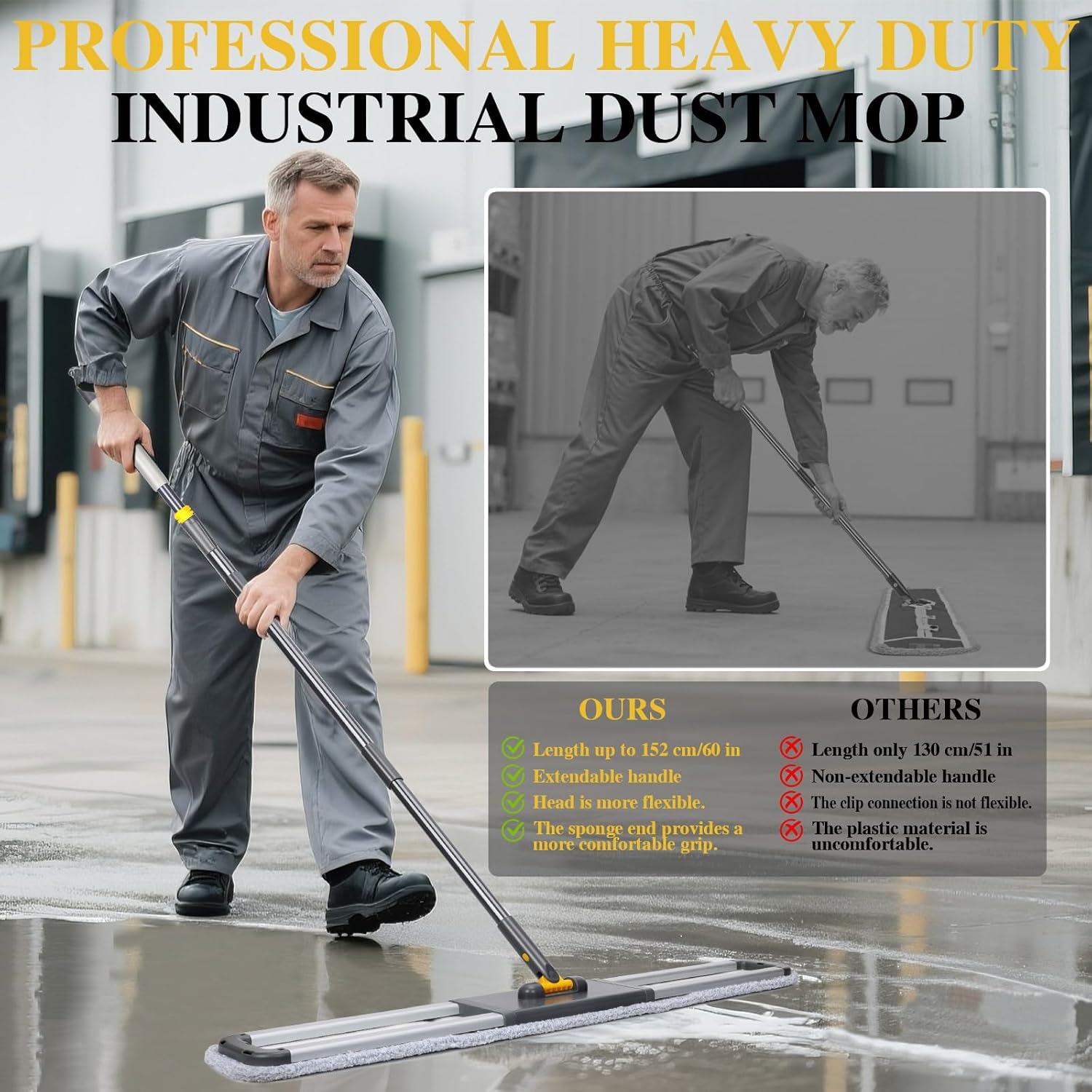 • Commercial-Grade Durability – Designed for heavy-duty cleaning, this industrial dust mop is perfect for commercial spaces, restaurants, and large homes.