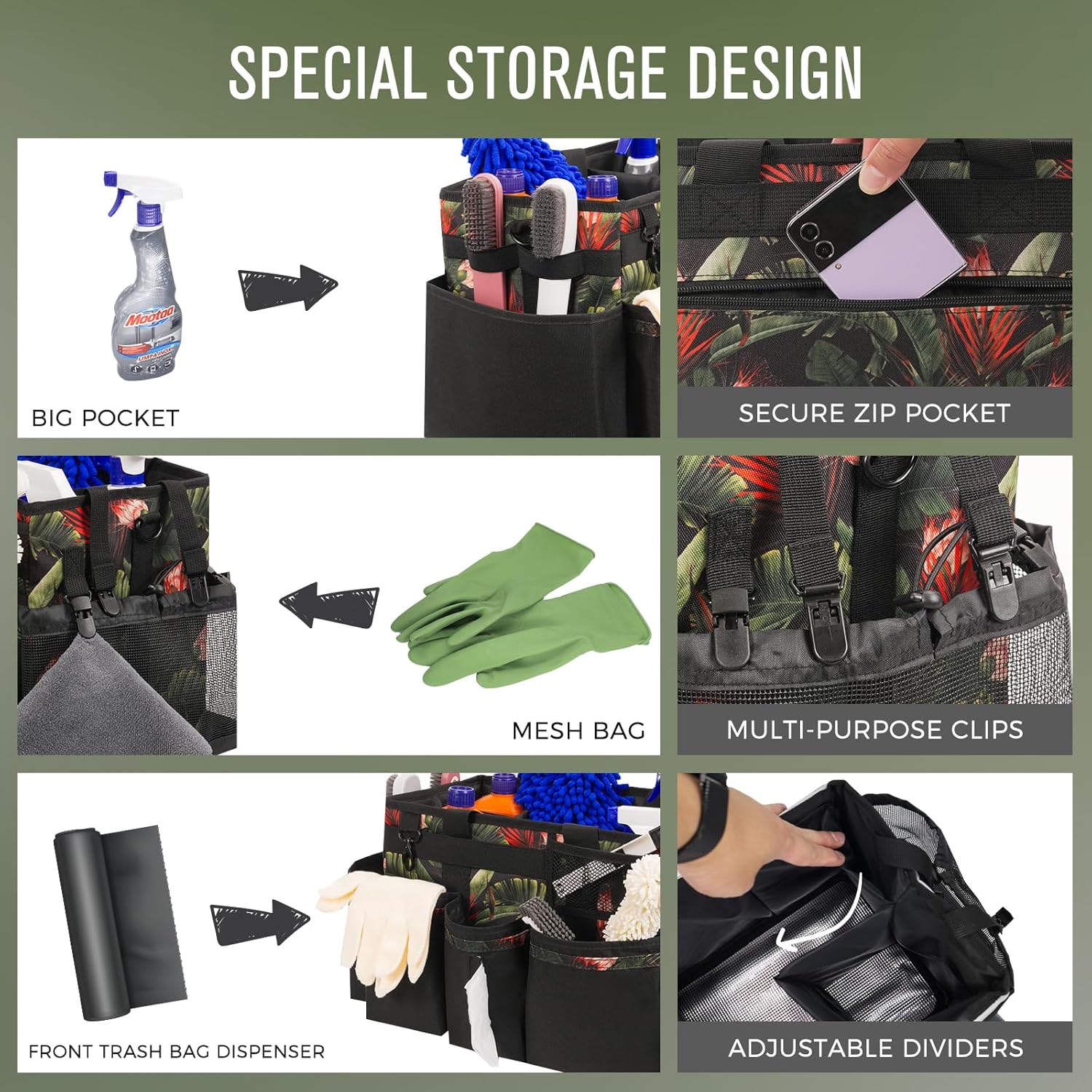• Large Wearable Cleaning Caddy: Our cleaning organizer bag is perfect for storing cleaning supplies & tools, measures 15.7 x 9.6 x 9.1 inches. Cleaning caddy bag with handle and adjustable shoulder straps for easily cleaning in the home, kitchen, sink, car, and outside. Keep your cleaning items well-organized and neatly. Great for maids and housekeepers