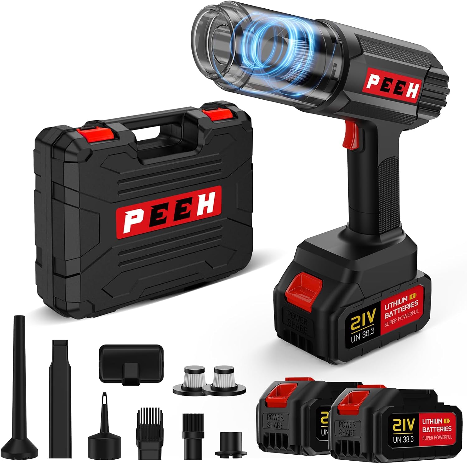 • POWERFUL HANDHELD VACUUM CLEANER - The PEEH wireless vacuum cleaner is equipped with a 550W brushless motor and 45Kpa powerful suction, making it easy to handle a variety of cleaning scenarios, including car dust, keyboards, carpets, pet hair, and sofas, ensuring thorough cleaning with no missed spots.