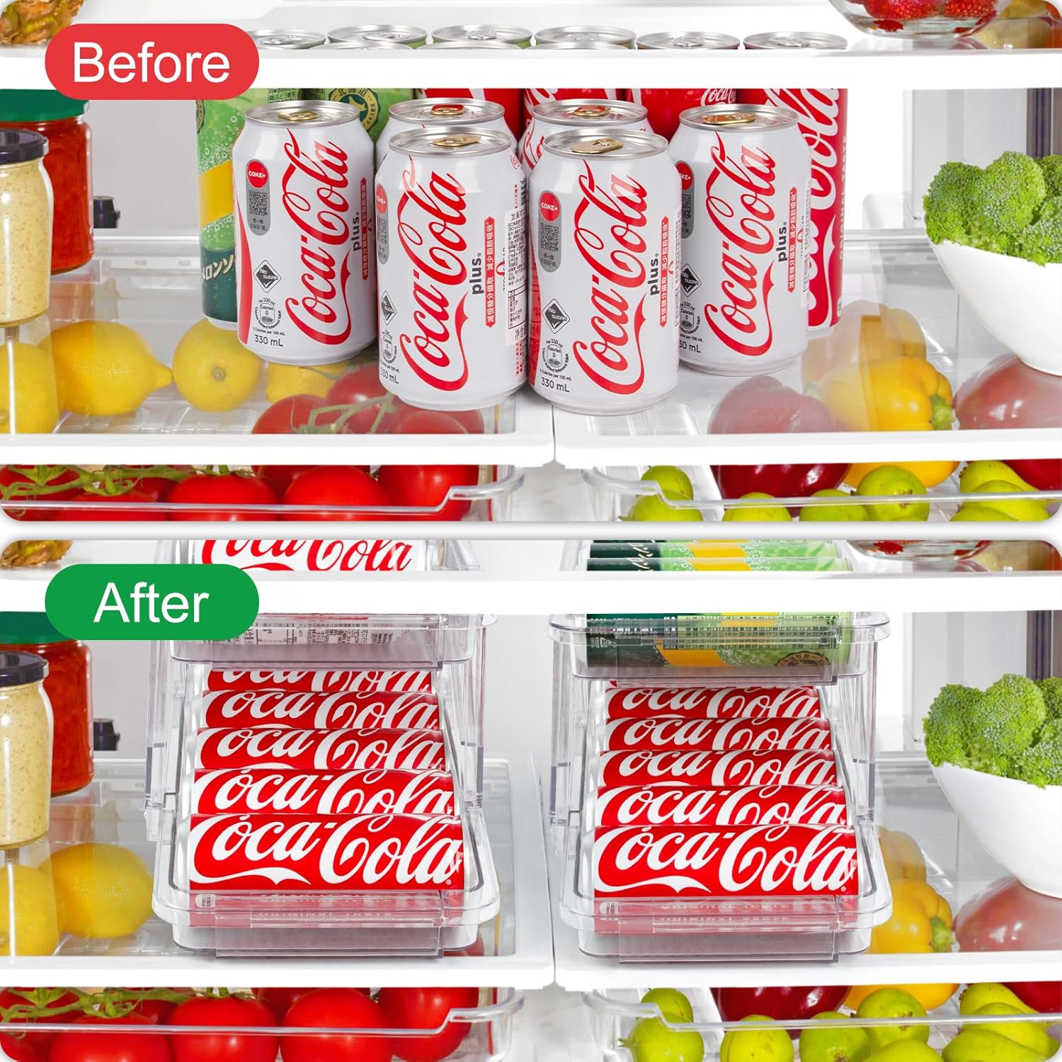 • Multi-Purpose: Designed for more than just beverages, this transparent bin is a versatile addition to your kitchen or fridge. Use it to store cans, bottles, cups, or even snacks and other food items, making it a must-have for any household.
