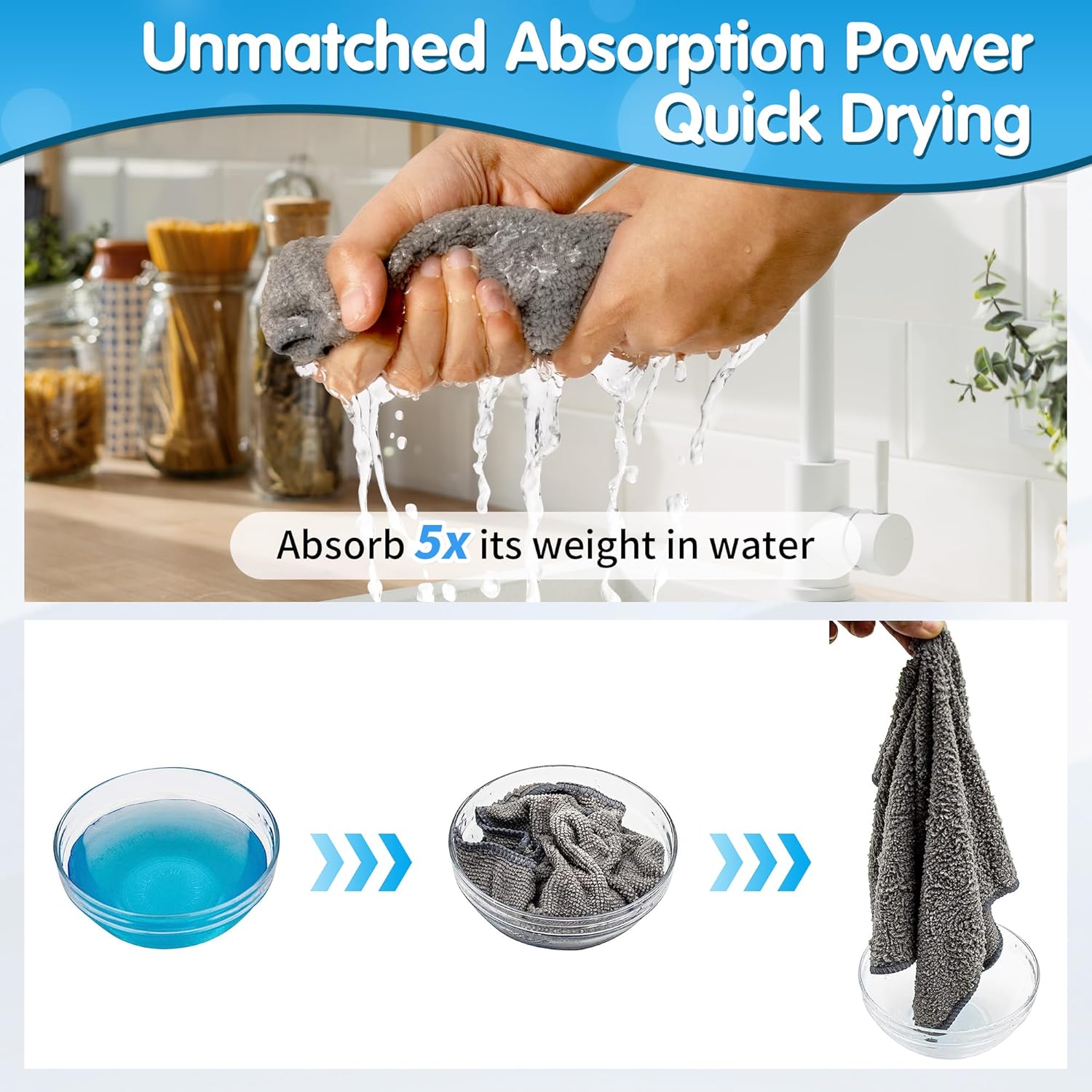 • Powerful cleaning performance: These premium microfiber towels are not only perfect for dishwashing, but also effortlessly remove grease and particles from microwaves, plates, pots, and pans. Moreover, they work wonders as dusters, effortlessly removing fingerprints and dirt from silverware and glassware, leaving your home spotless.