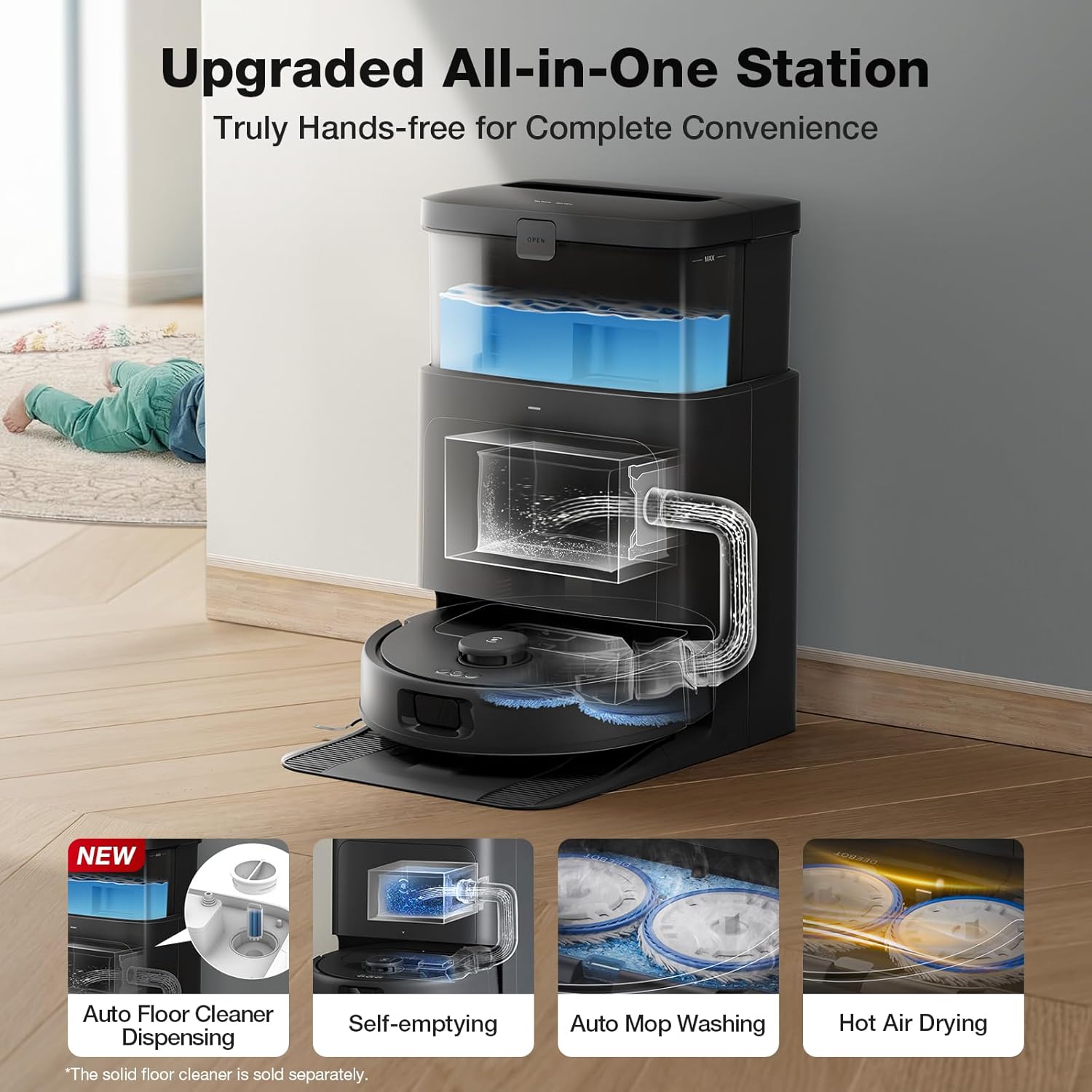 • Unbeatable 10,000Pa Suction Power - Powered by advanced motor and airflow technology, DEEBOT N30 OMNI boasts a powerful 10,000Pa suction that deep-cleans surfaces, effortlessly removing dirt
