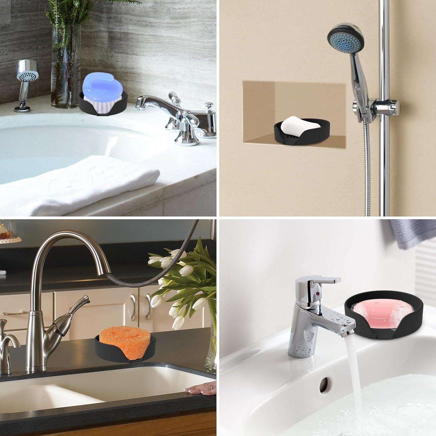 • Self Draining Soap Dish: The silicone shower soap dish is designed with an raised surface and a drain spout. It can automatically drain water into the sink, prevents soap from getting mushy and water from pooling on the countertop, keeping both clean
