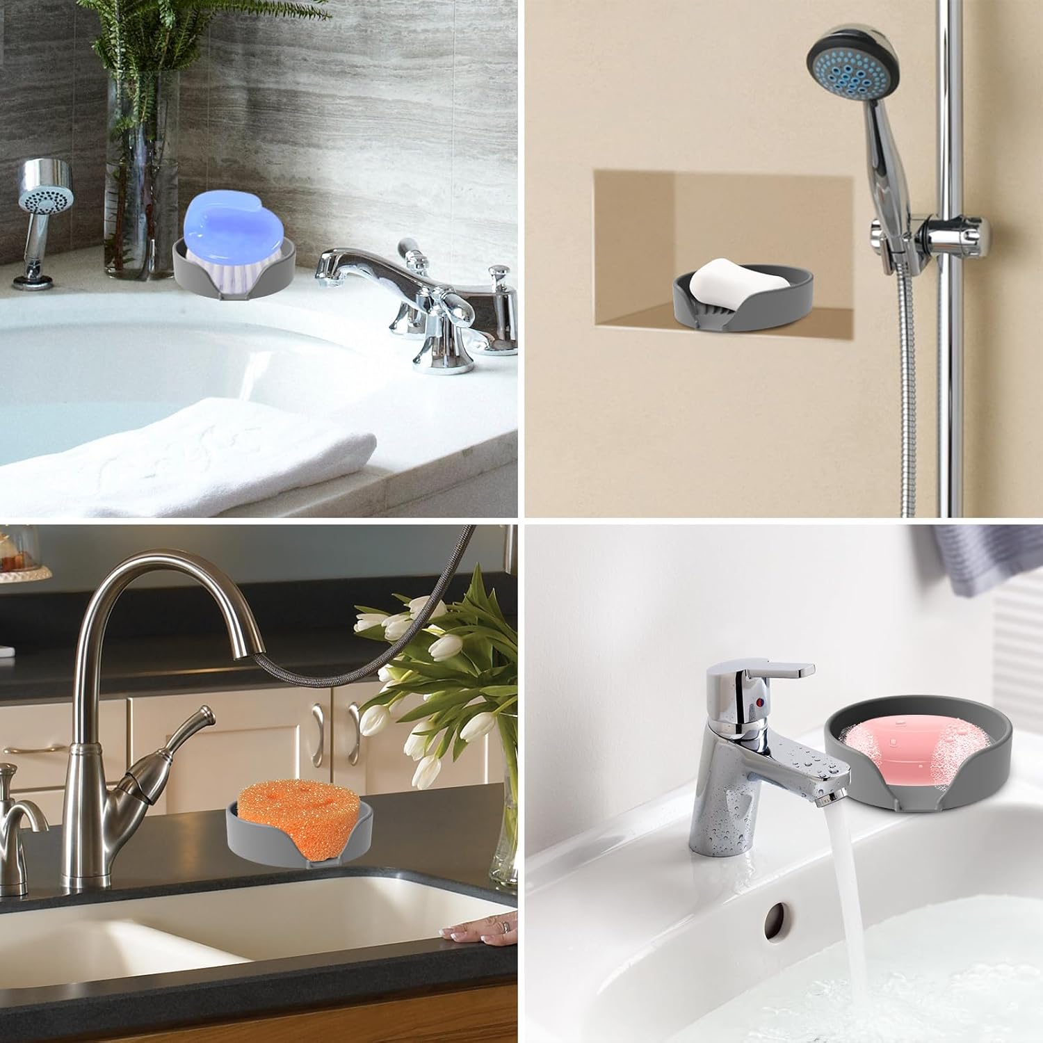 Self Draining Soap Dish, Silicone Suction Cup Soap Holder Tray Savers Container Sponge Holder for Bar Bathroom Shower Kitchen Sink, Can Extend Soap Life (2, Gray)