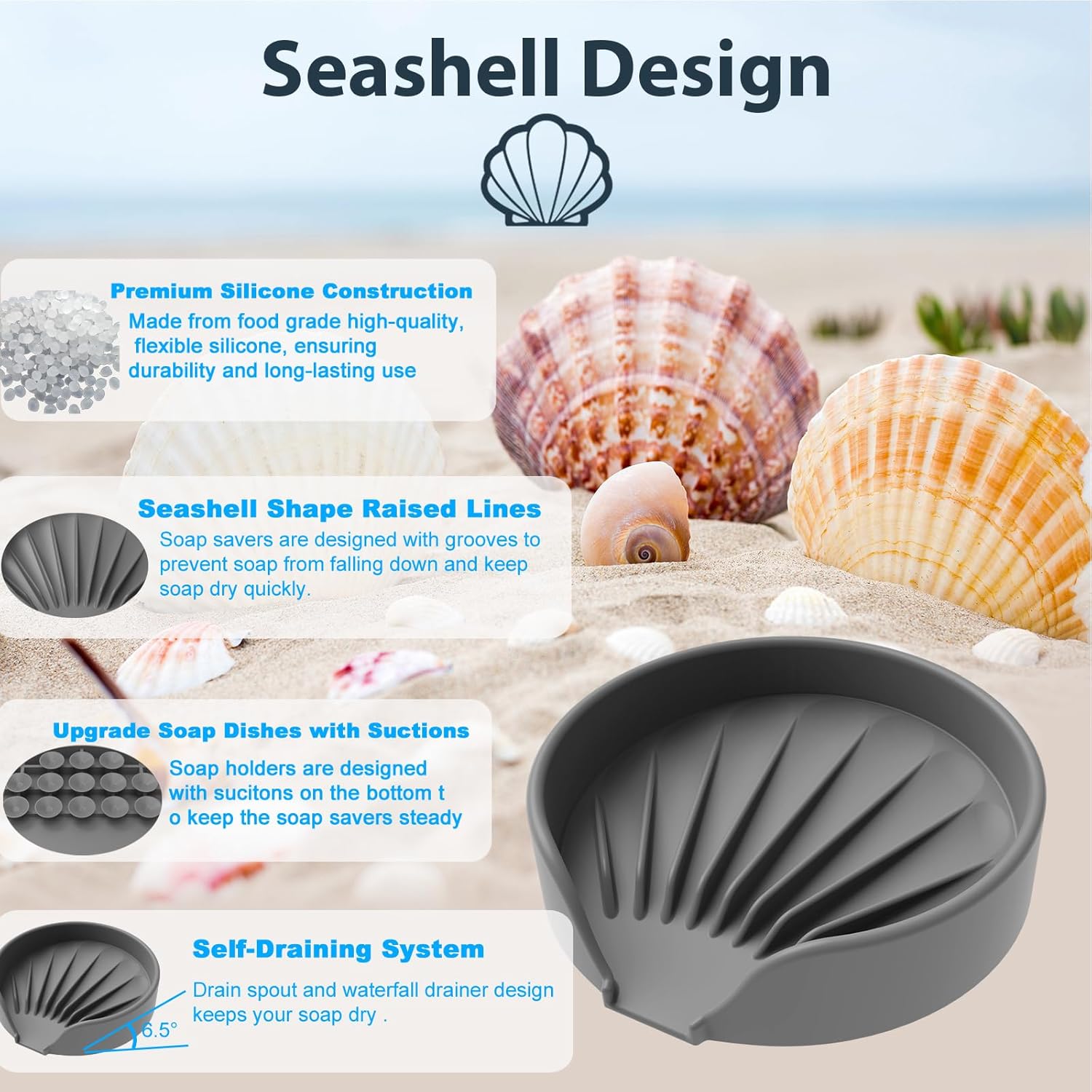 • Self Draining Soap Dish: The silicone shower soap dish is designed with an raised surface and a drain spout. It can automatically drain water into the sink, prevents soap from getting mushy and water from pooling on the countertop, keeping both clean