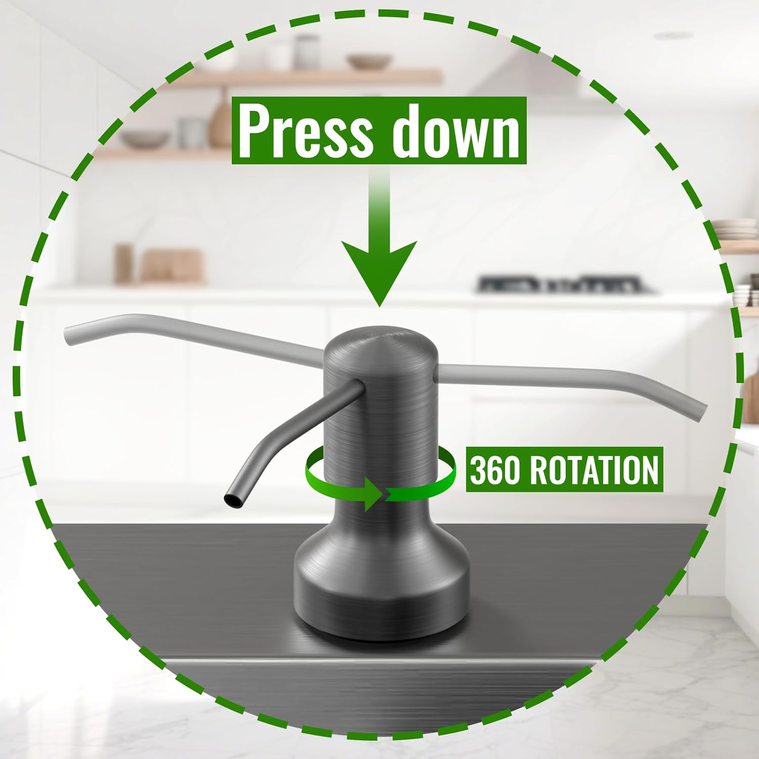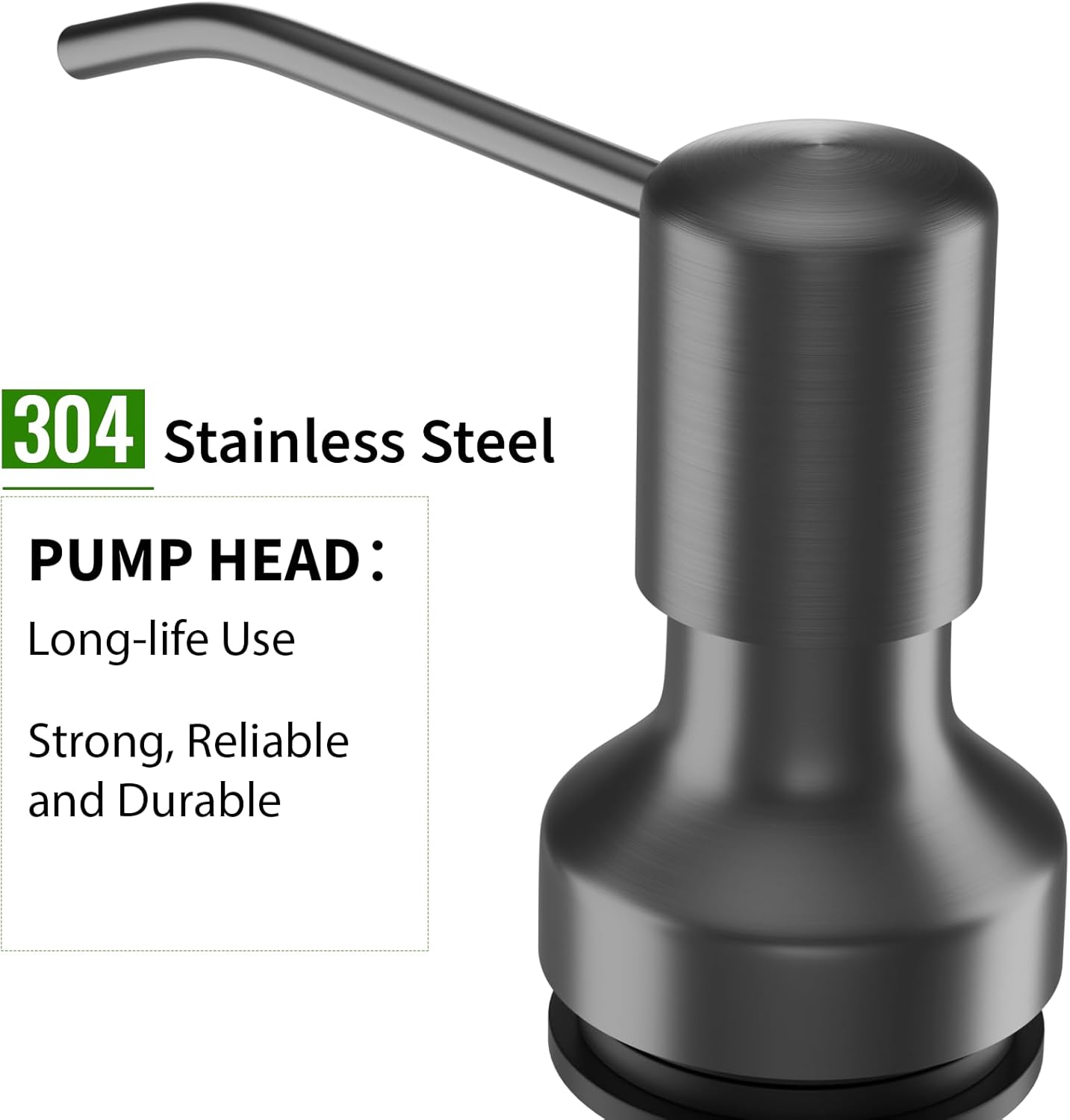 • Premium Material:This sink soap dispenser for kitchen sink is made of durable 304 stainless steel and PE plastic. This soap dispenser pump head possesses long-lasting performance and can survive over 50,000 press tests. Not only waterproof, and is perfect for damp environments.