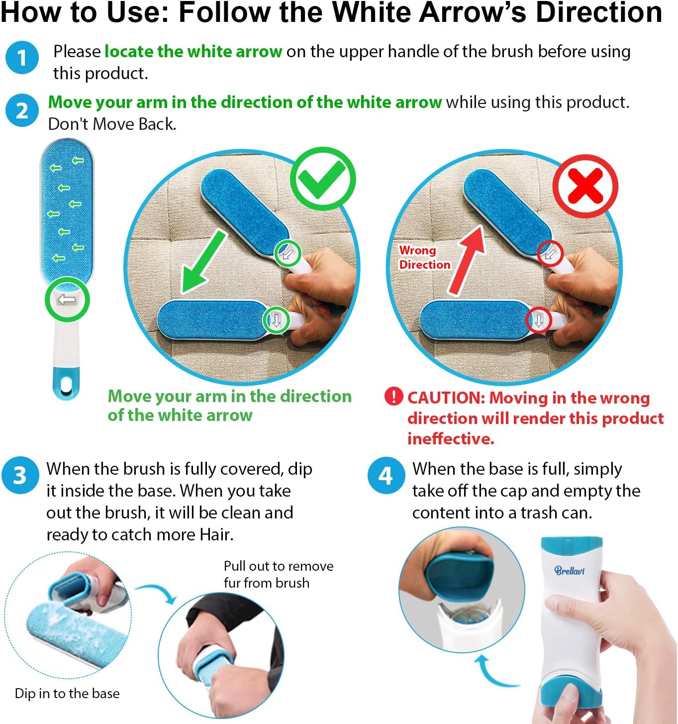 • Portable, Self-Cleaning and Travel-Ready: Compact, lightweight, and easy to carry, our Pet Hair Remover is perfect for managing pet hair when traveling with your dog or cat, ensuring your pet's comfort and cleanliness. Available in two convenient sizes, it features a self-cleaning base for hassle-free hair removal. Simply follow the directional arrows for effective cleaning, and use the base to automatically remove lint and fur from the pet hair remover.