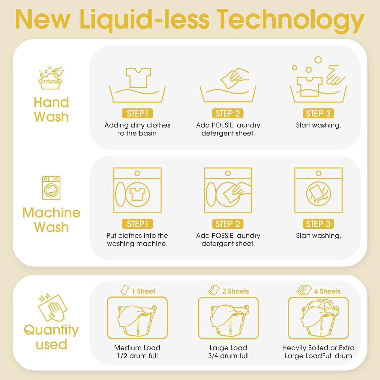 • Easy to Use - Liquidless detergent sheets, 1 sheet for small or medium loads where clothes are not very dirty, 2 sheets for large loads and 4 sheets for extra large loads, no waste. Not too little and not too much to save resources
