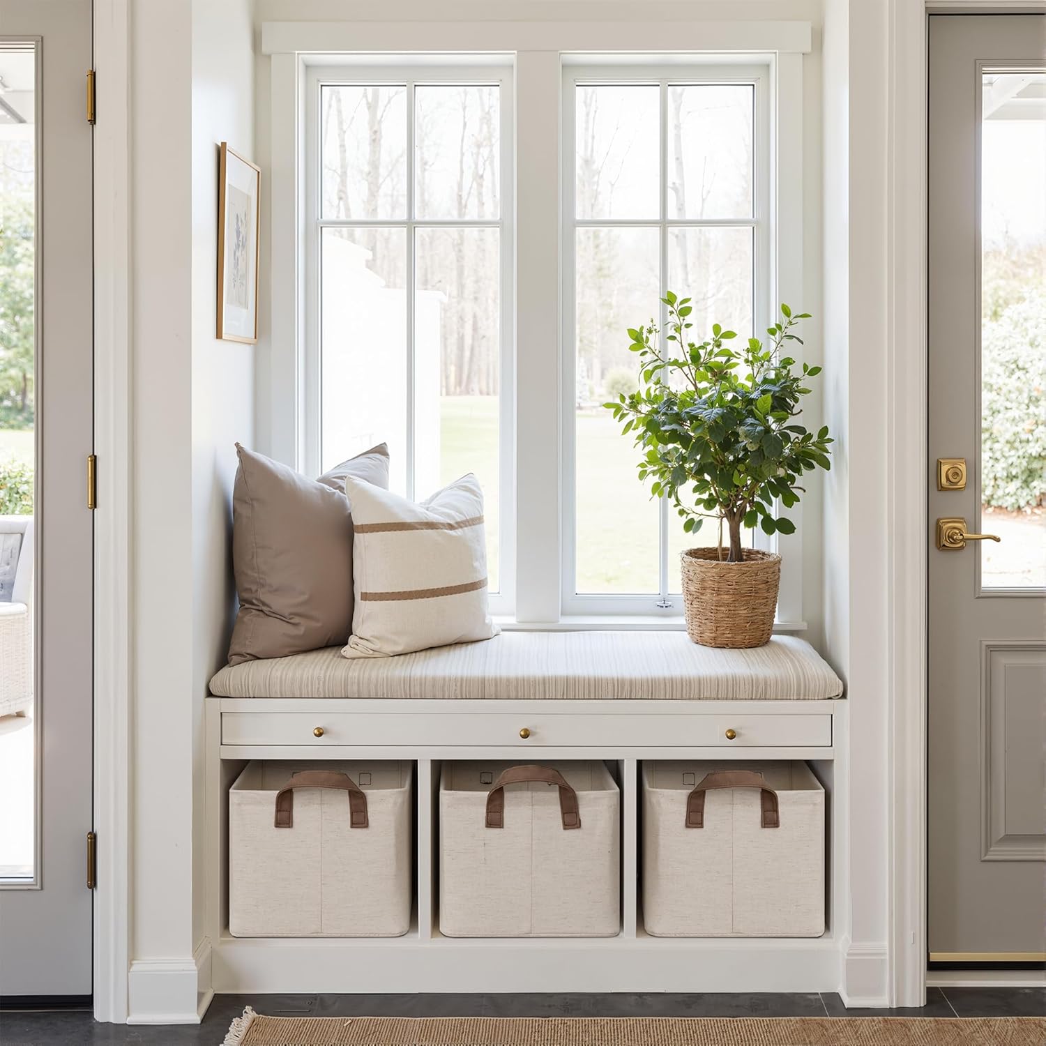 StorageWorks Storage Bins, Shelves Baskets for Organizing, Fabric Closet Organizers with Handles, Metal Frame, Beige(Cotton-linen), 2-Pack