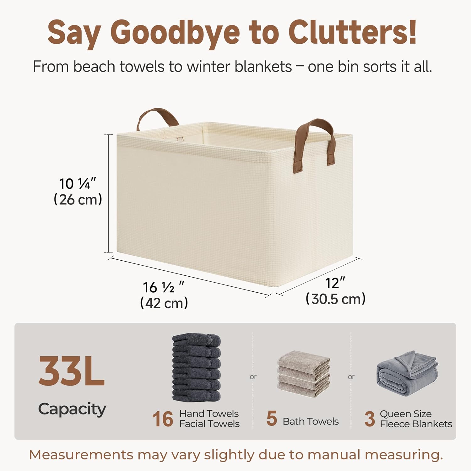• Store Plenty: These large, durable storage baskets are perfect for storing a variety of items, including clothing, towels, blankets, pet supplies, books, magazines, albums, DVDs, office and craft supplies, etc.