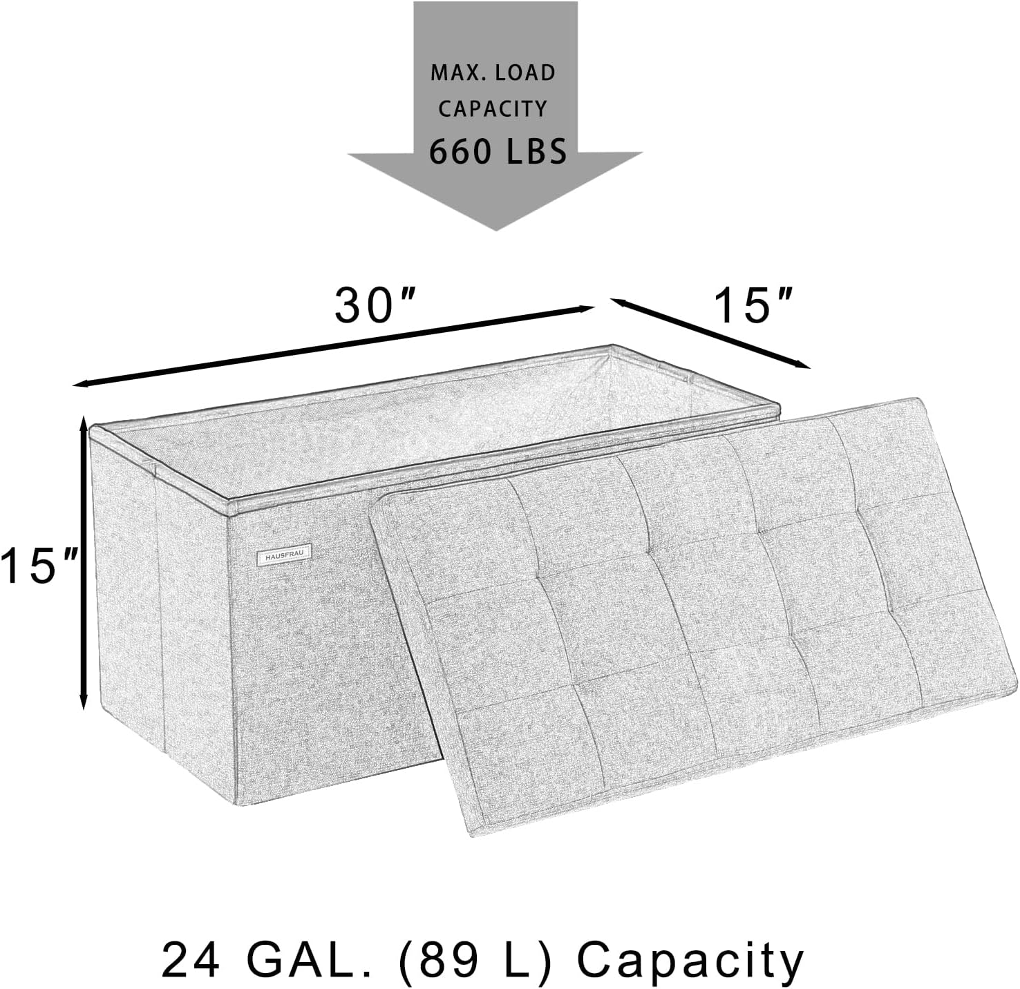 HAUSFRAU - 30 Inches Storage Ottoman Bench with Flipping Lid, Foldable Storage Chest Foot Rest for Living Room, Bedroom, Entryway, Load 660 lb, Linen Beige