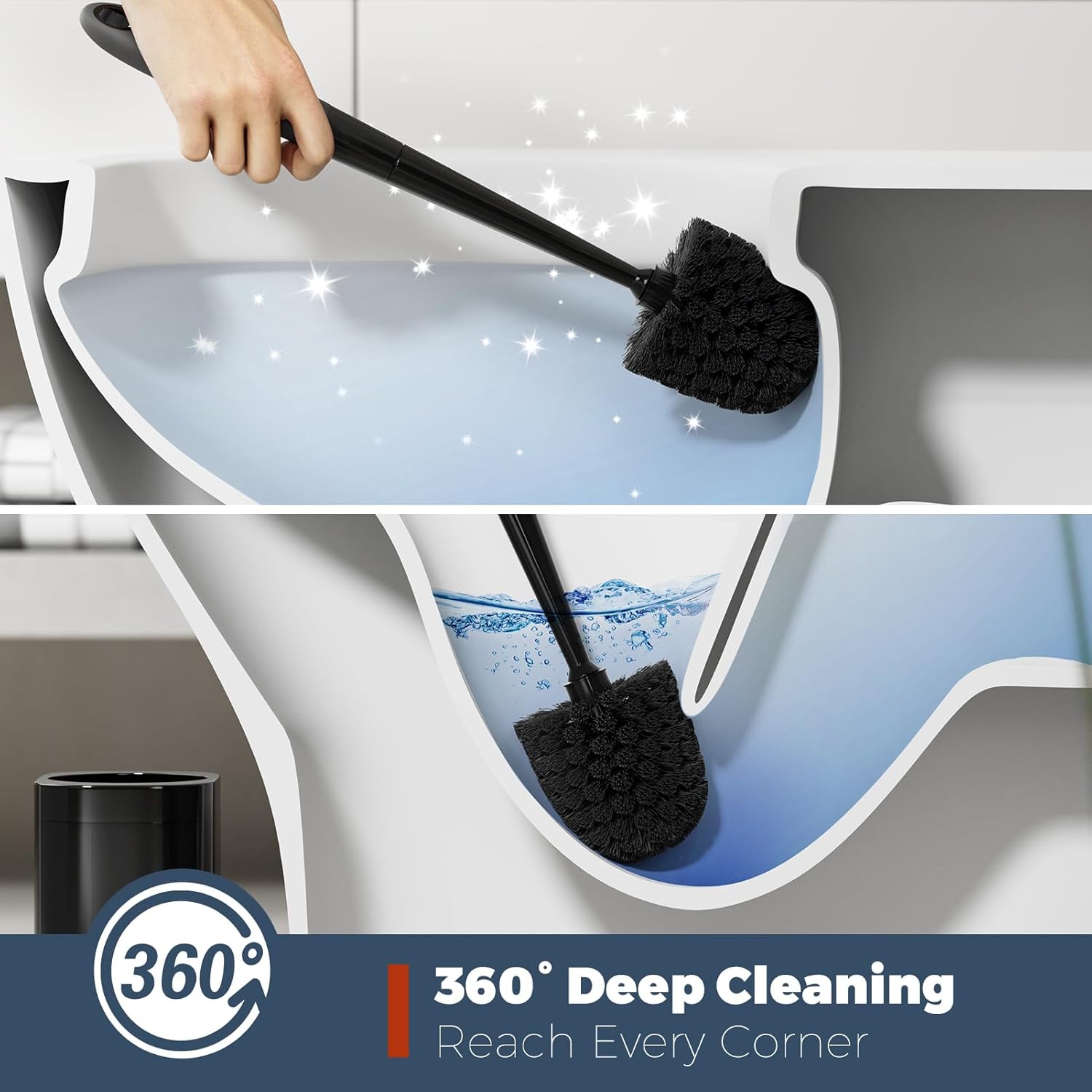 • 【360° Clean】The toilet brush head with classic design cleans the grooves and the lower edge of the toilet bowl