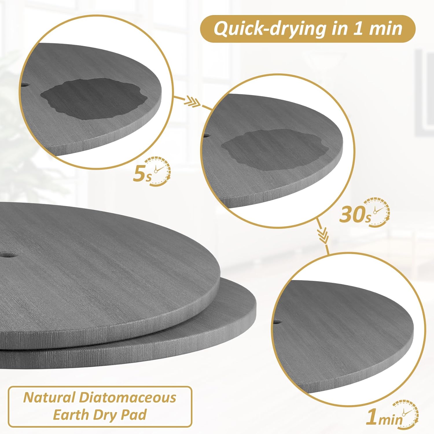• Kitchen Instant-Drying Utensil Holder: This silverware caddy comes with instant dry diatomite stone pad at bottom, which is made from natural diatomaceous earth ,well performace for its exceptional water adsorption capabilities and reliability. They can automatically absorbs water and dries in a few minutes.This diatomite stone caddy can be used as a utensil drying rack which keeps your kitchen countertop more dry and tidy ,no more wiping countertops or scrubbing moldy residue.