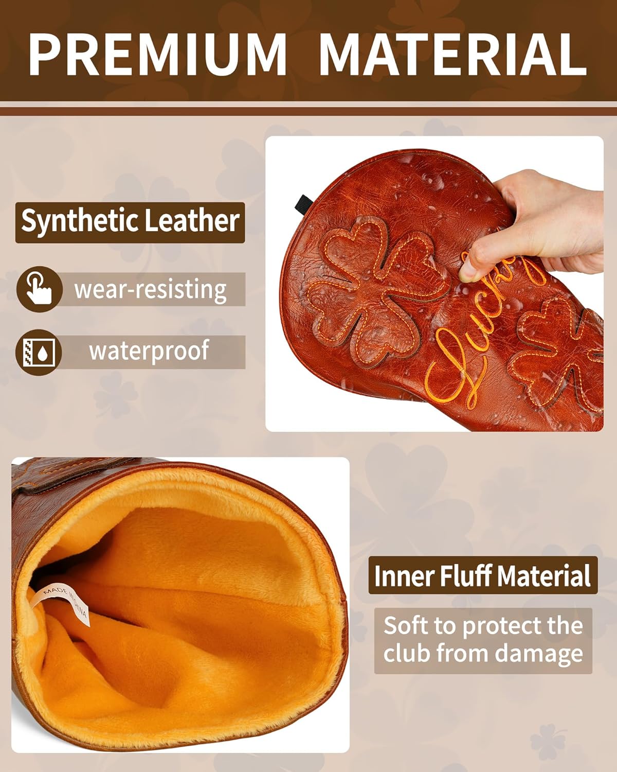 Golf Headcovers Golf Club Head Covers Four Leaf Clover Good Luck Charm - Clover Style Premium Leather Driver Fairway(FW) Wood Hybrid(UT) with Number Tags