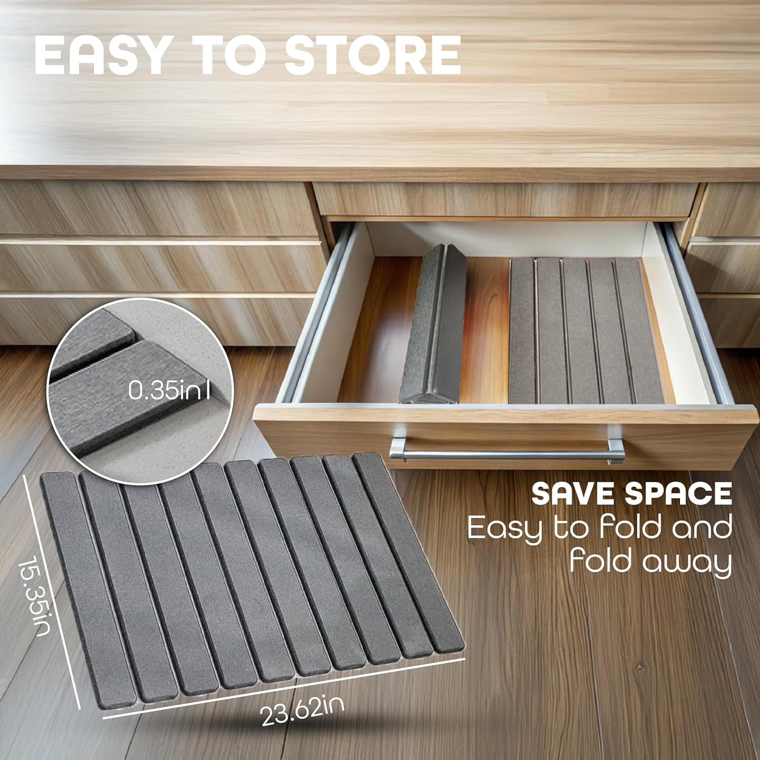 Large Stone Dish Drying Mats for Kitchen Counter, Foldable Quick Drying Mats, Eco-Friendly, diatomaceous earth bath mat, tapete de piedra absorbente para cocina 24" L x 16" W Inches (DARK GREY, LARGE)
