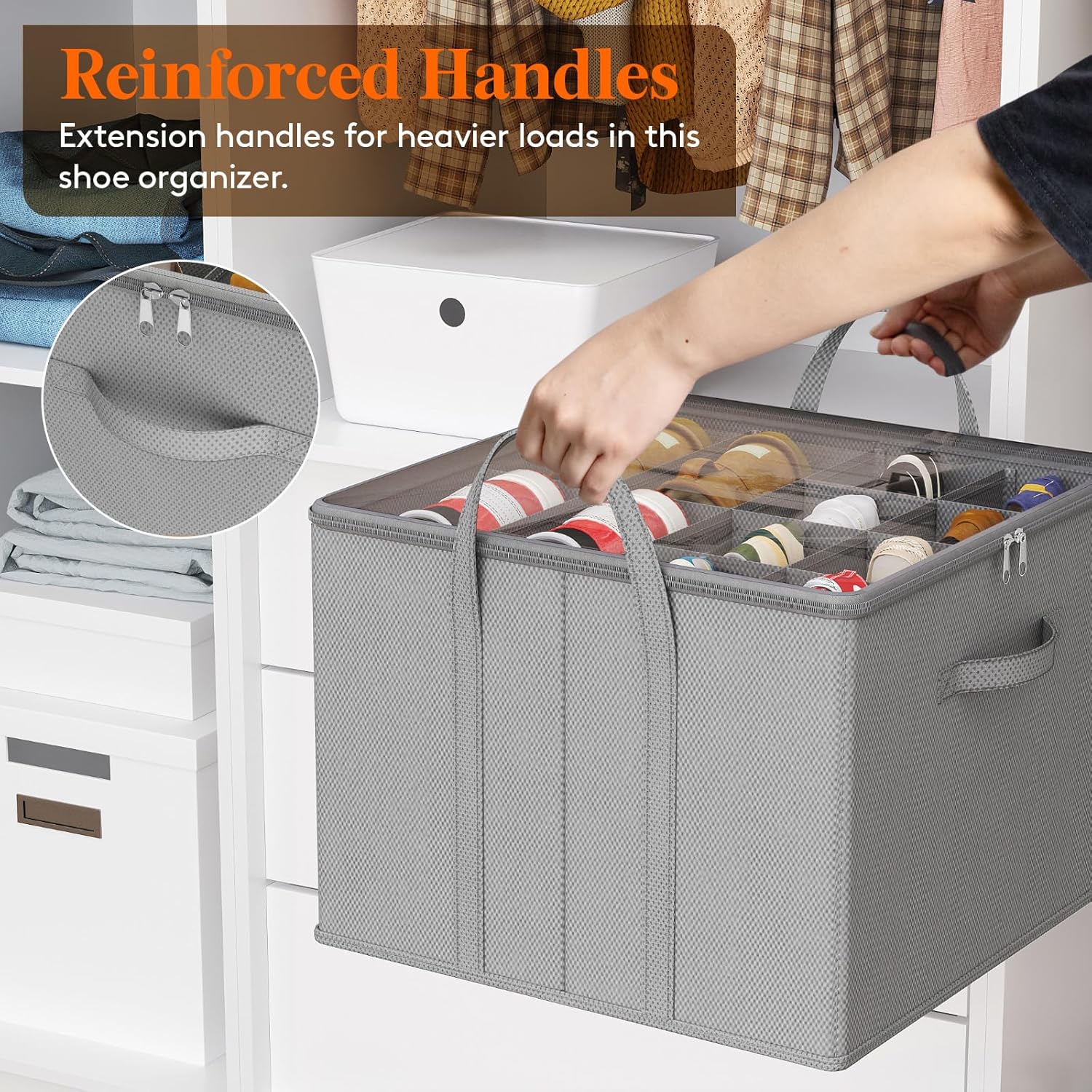 • Reinforced Structure: Crafted from non-woven fabric and reinforced cardboard, this shoe box features three sturdy handles for easy transport. Its robust side and bottom panels ensure shape retention under pressure, offering reliable long-term use