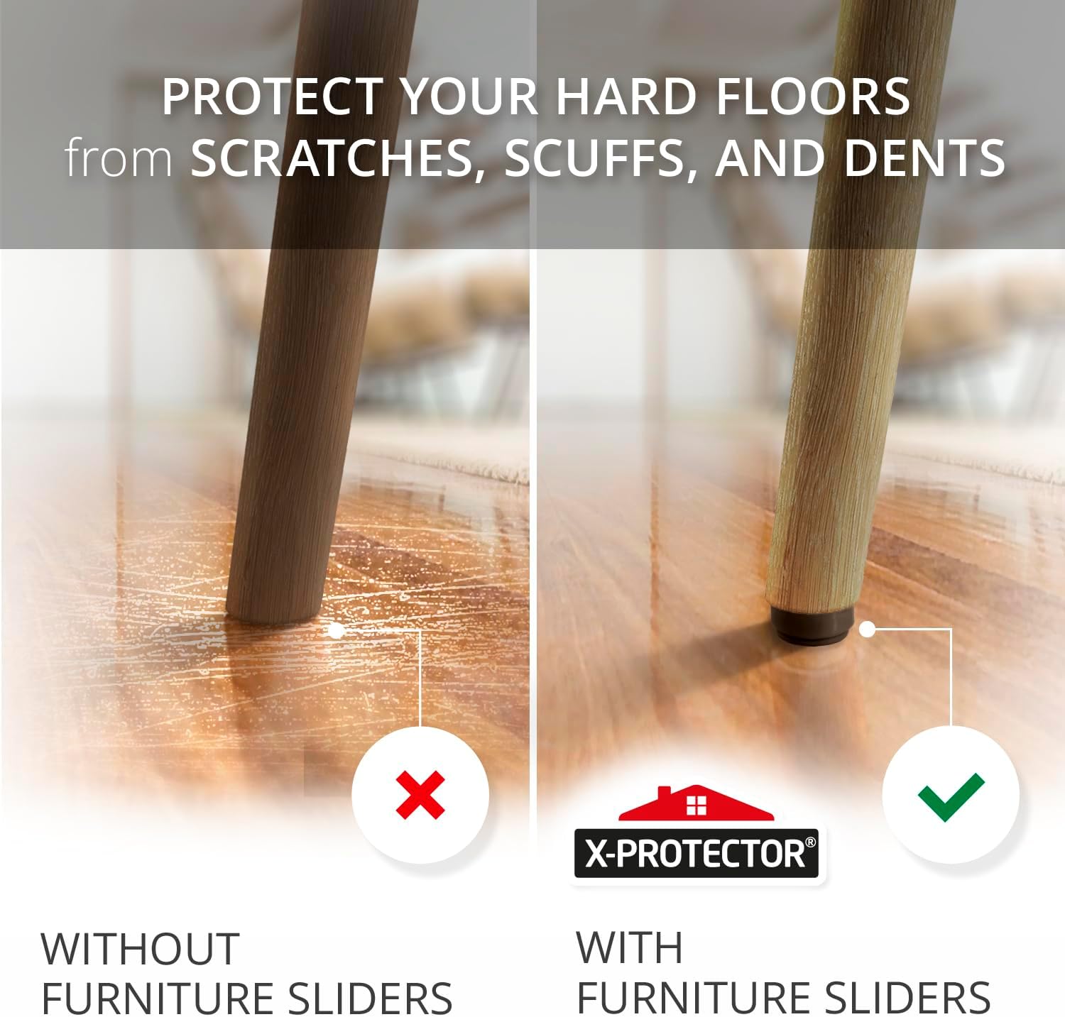• ✌️ 2 OPTIONS OF USE - X-Protector Chair Sliders can be used by screwing in the furniture leg or just sticking on the furniture feet - YOU CHOOSE HOW TO USE OUR CHAIR LEG FLOOR PROTECTORS!