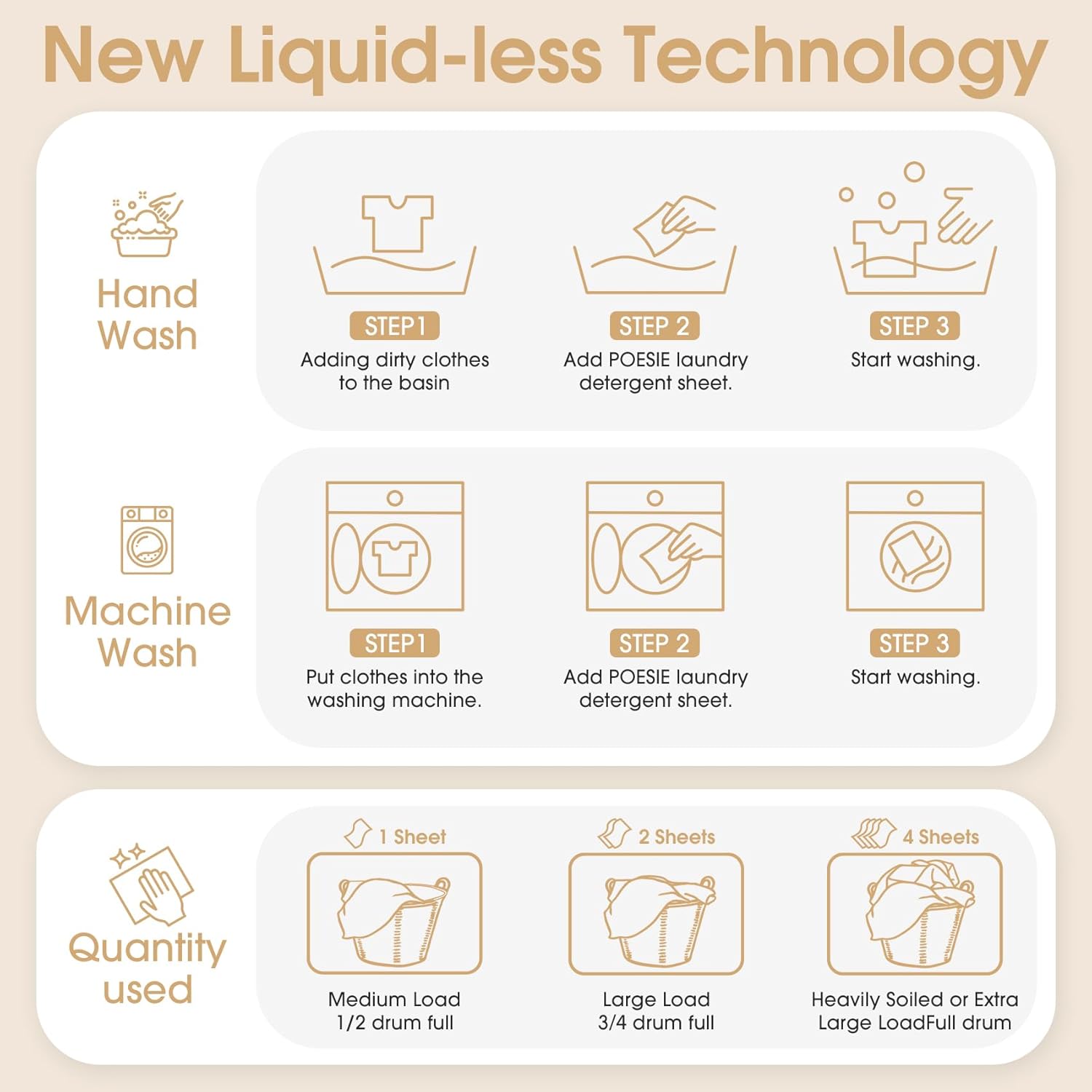 • Easy to Use - Liquidless detergent sheets, 1 sheet for small or medium loads where clothes are not very dirty, 2 sheets for large loads and 4 sheets for extra large loads, no waste. Not too little and not too much to save resources
