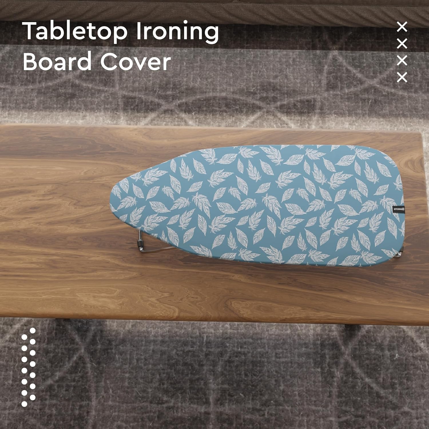 Encasa XO Ironing Board Cover and Pad 28"x12" - Thick 3mm Felt Padding, Drawstring Tightening & Lock, Easy Fit, Scorch & Stain Resistant, Fits Mini Ironing Board - Big Leaves Blue