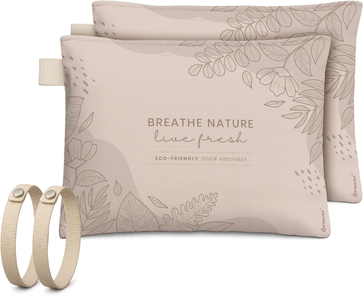 Roonin Activated Charcoal Odor Absorber - Bamboo Charcoal Air Purifying Bag - Activated Charcoal Bags Odor Absorber Packets - Home Deodorizer Odor Eliminator (2-pack)