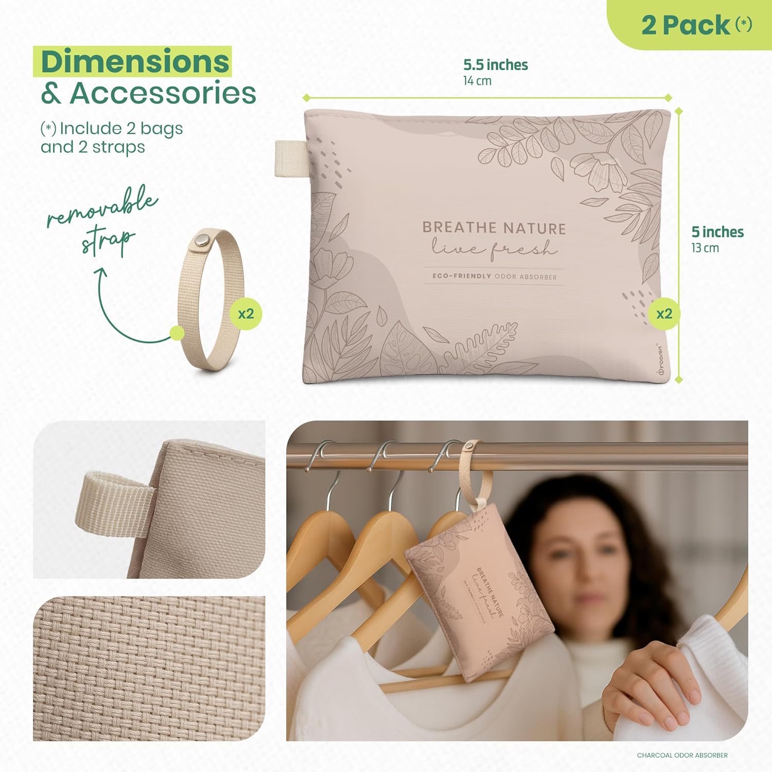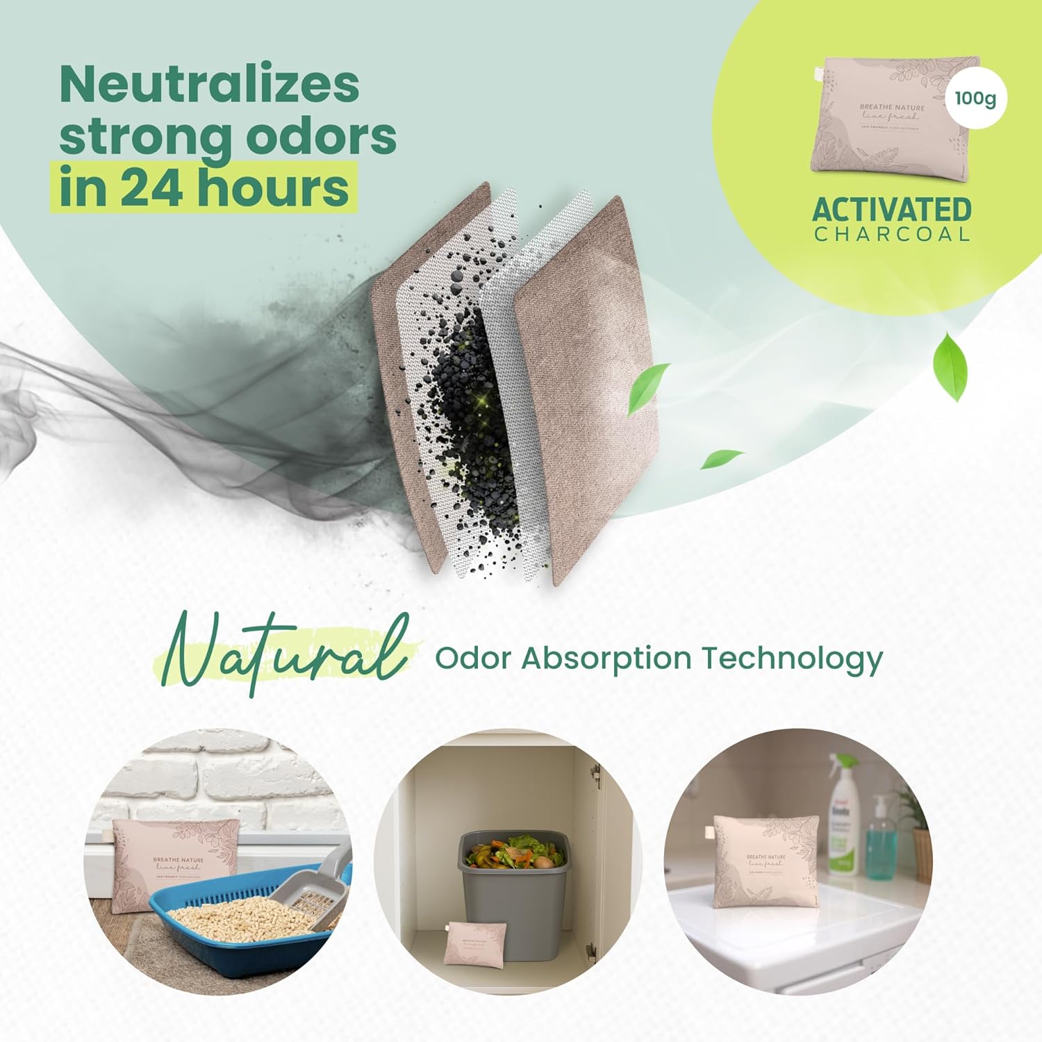 • 100% NATURAL & SAFE ODOR ABSORPTION – Our bamboo charcoal bags act as a powerful natural odor absorber, made from non-toxic materials and completely fragrance-free. A safe and eco-friendly solution for homes with kids and pets—no sprays, no chemicals.