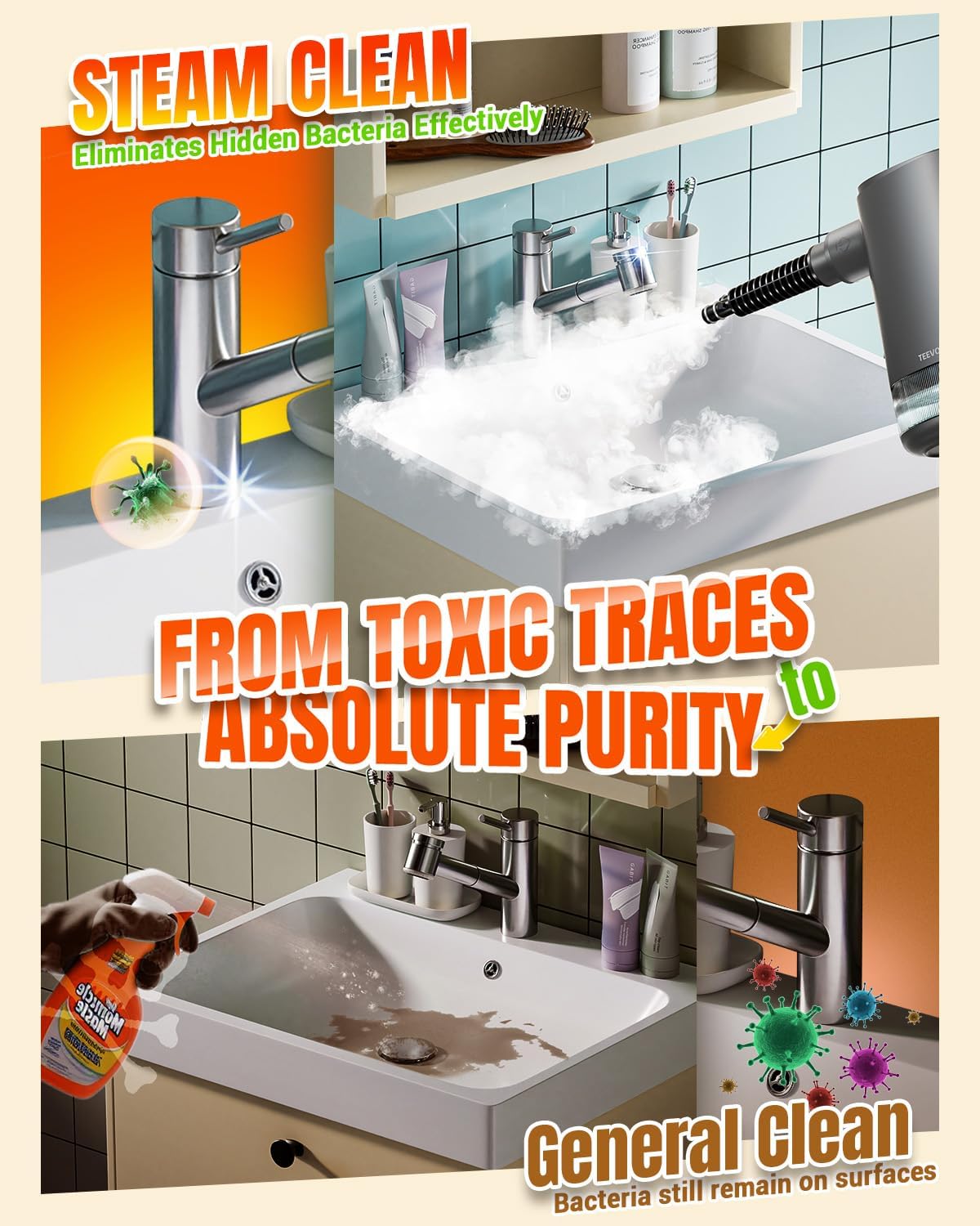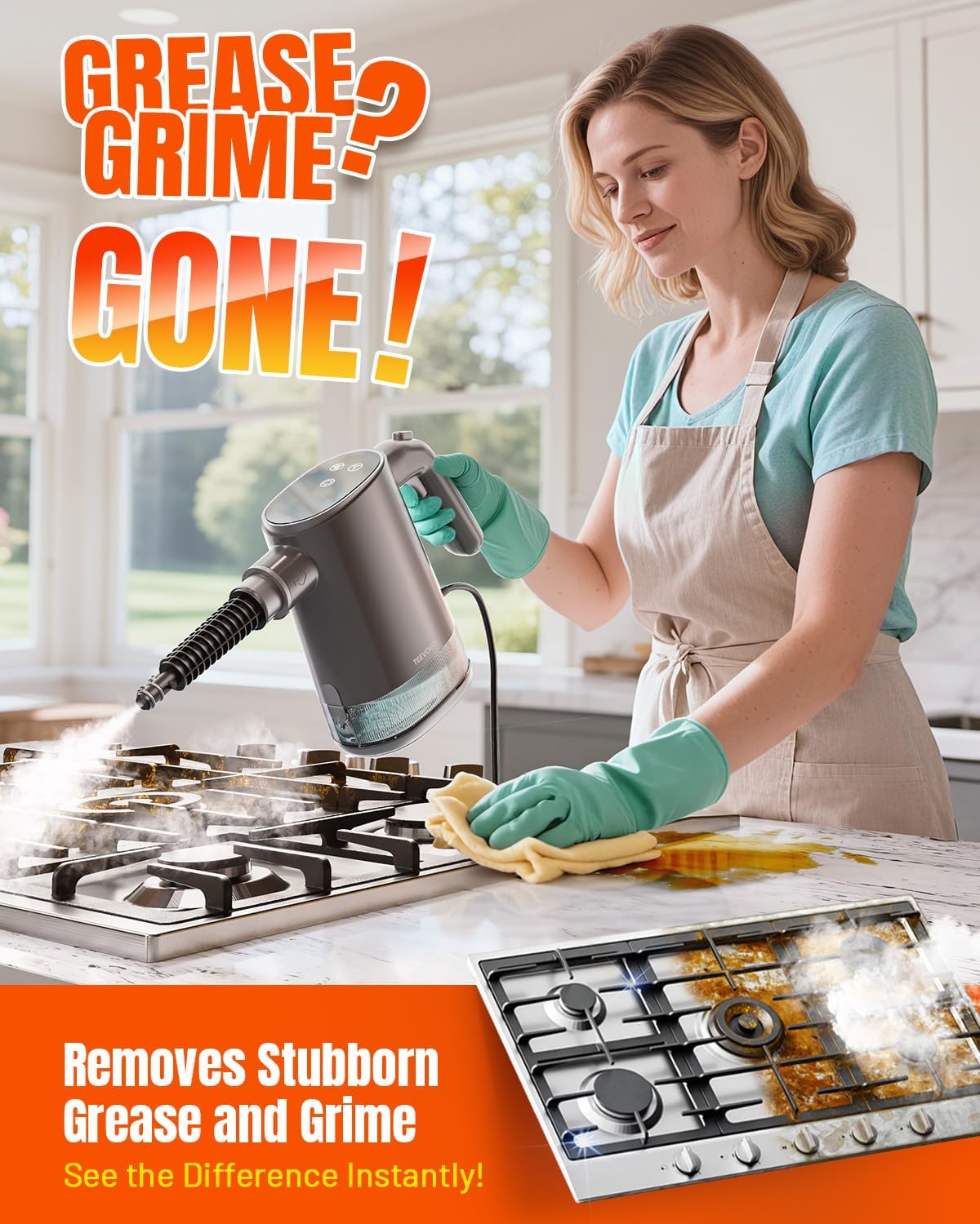 • Powerful & Continuous Steam: This handheld steamer for cleaning generates strong, pressurized steam to break down grease, grime, and sticky messes on contact without dripping. The steam cleaner for home tackles multi-surface messes like tile, kitchen counters, grout lines, and more with high-efficiency cleaning—with zero chemicals needed