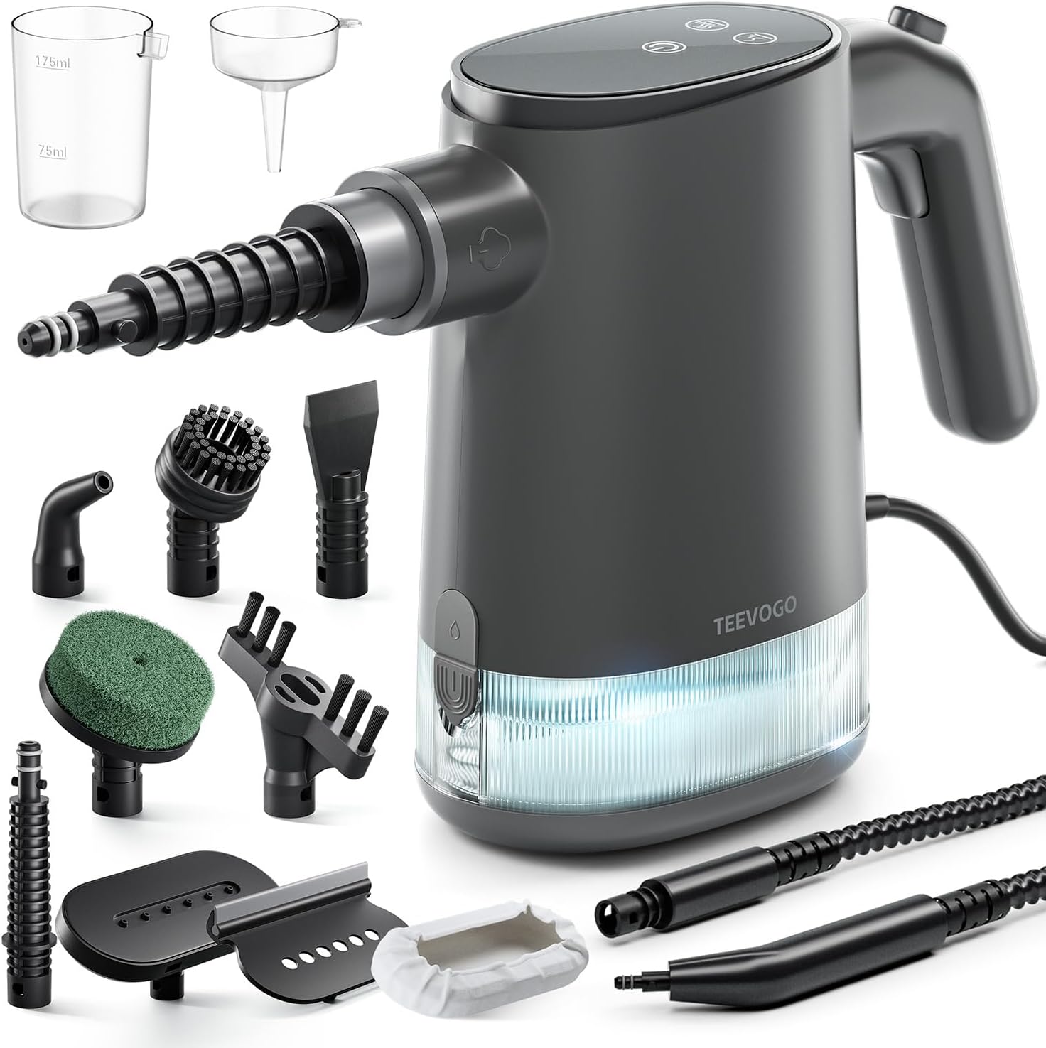 Handheld Steam Cleaner for Home, Portable Steamer Cleaner with 12 Accessories, 15S Fast Heat Up, Steam Adjustable, Steamer for Cleaning Grout, Floor, Kitchen, Bathroom, Windows, Black