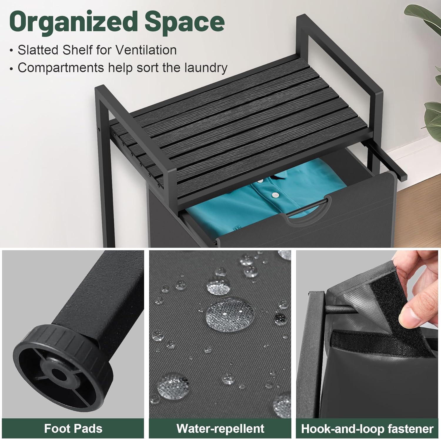 • Large Capacity - Featuring a 16 gallons capacity and an integrated open-shelf design, this laundry hamper helps you make the most of your storage space, easily accommodating both your clothes and accessories.