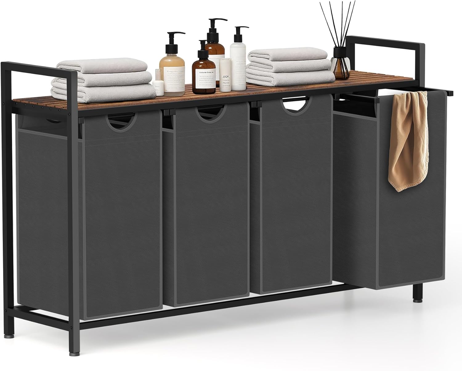 Laundry Hamper, Laundry Sorter with 4 Pull-Out Removable Oxford Fabric Bags Cloth Laundry Basket 4 x 10 Gallons (Grey and Rustic Brown)
