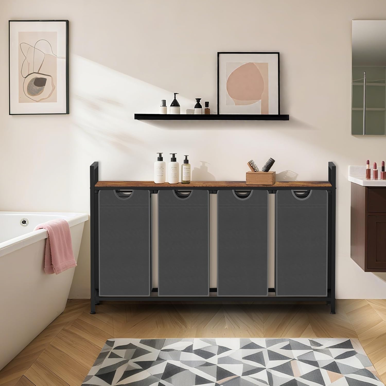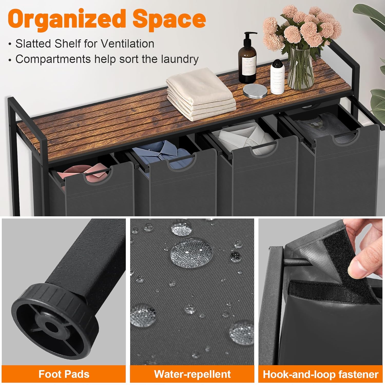 • Large Capacity - Featuring a 40 gallons capacity and an integrated open-shelf design, this laundry hamper helps you make the most of your storage space, easily accommodating both your clothes and accessories.