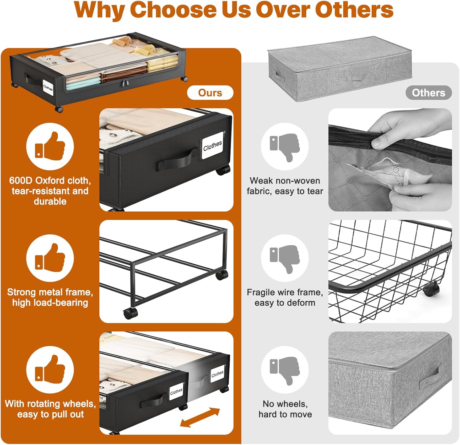 • Upgraded Large Capacity: Made of high-quality 600DPU fabric and a sturdy metal frame, this under-bed storage box can hold up to 68 lbs. It’s spacious for organizing items of various sizes, keeping everything neat and convenient. Perfect for storing clothes, shoes, books, bedding, and other essentials.