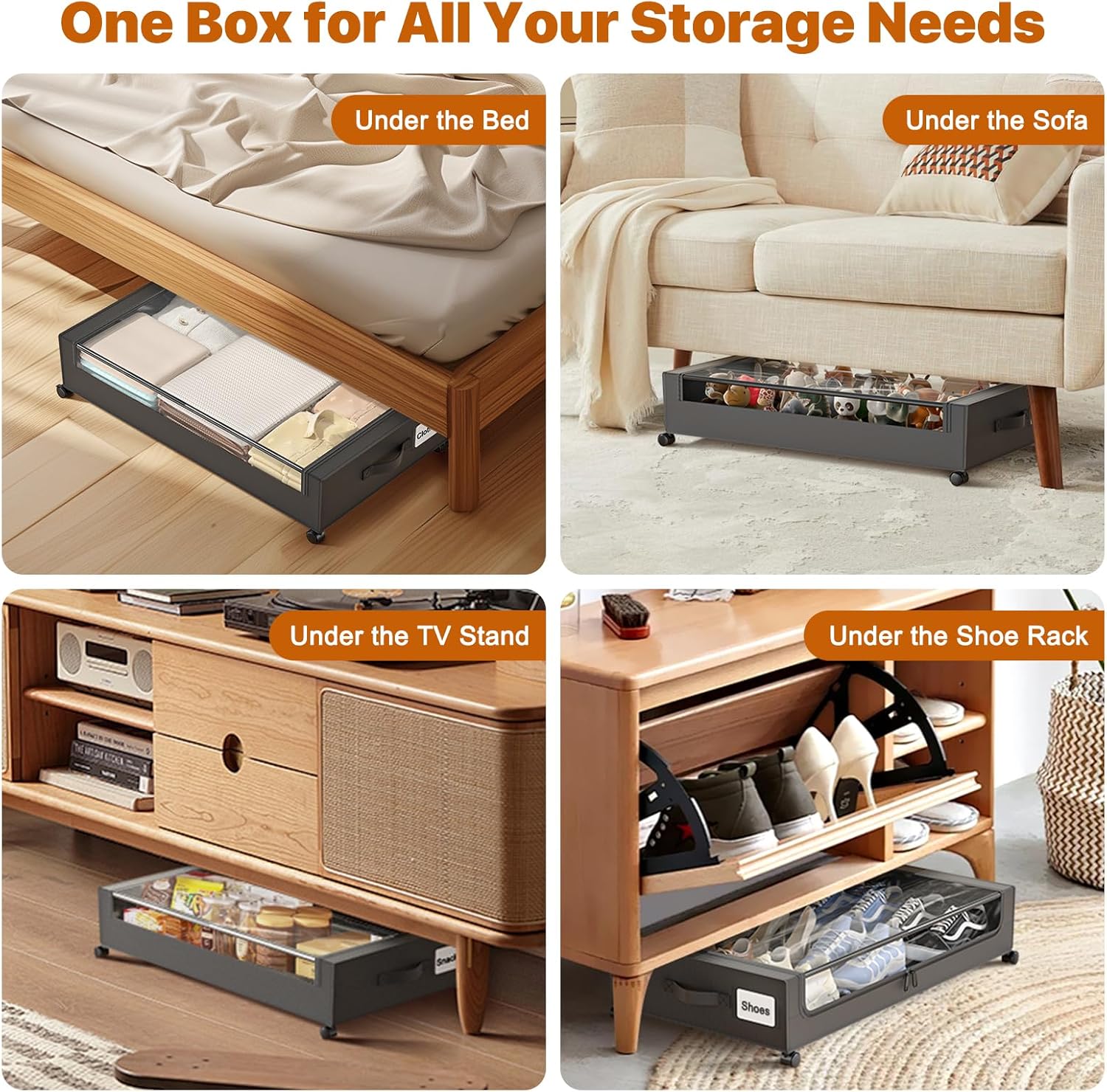• Versatile & Multi-Purpose Use: This under-bed storage box is not just for the bedroom—it’s perfect for organizing clothes, shoes, books, and other household items in various spaces like living rooms, closets, attics, and more. It offers a neat, space-saving storage solution for any room in your home.