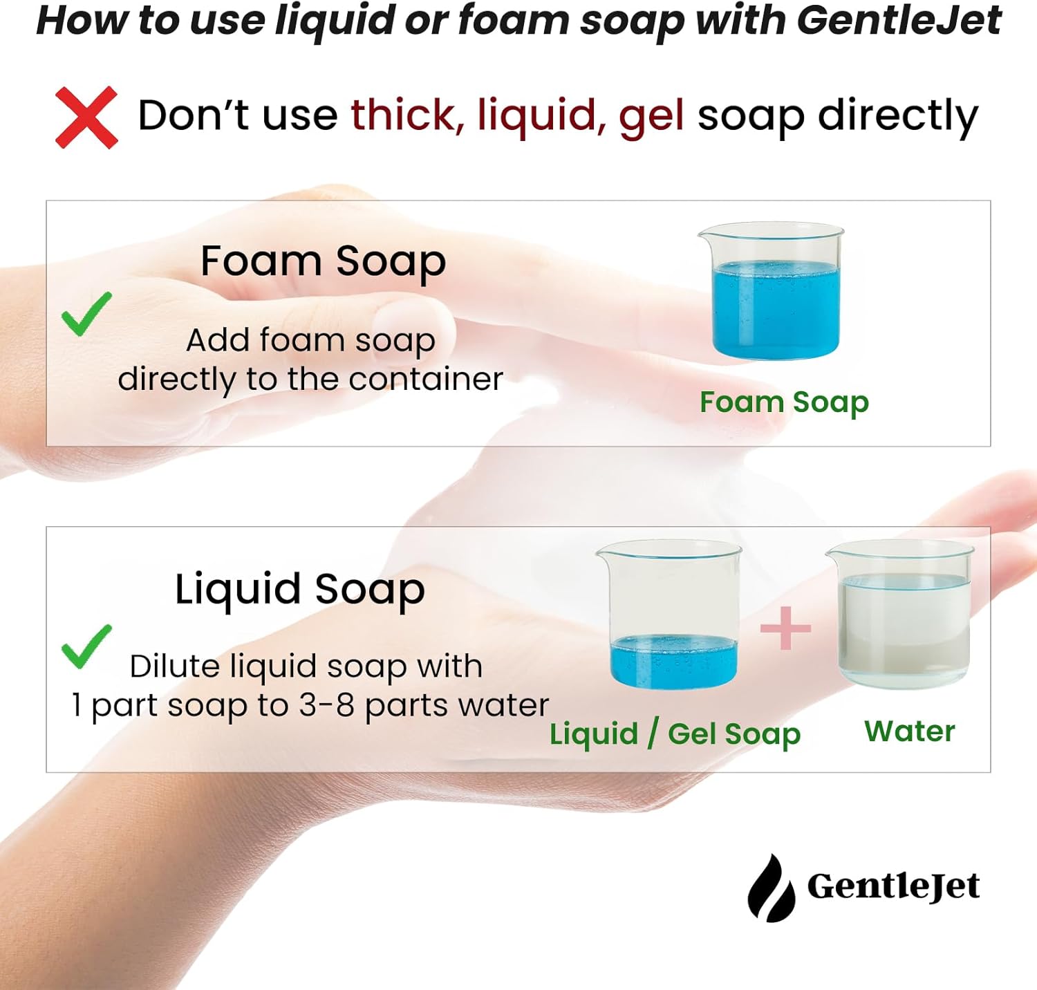 • Automatic Foam Soap Dispenser - Generates rich foam using suitable liquid solutions. For optimal performance, use foaming hand soap or water-diluted liquid soap. Avoid thick or gel-based soaps.